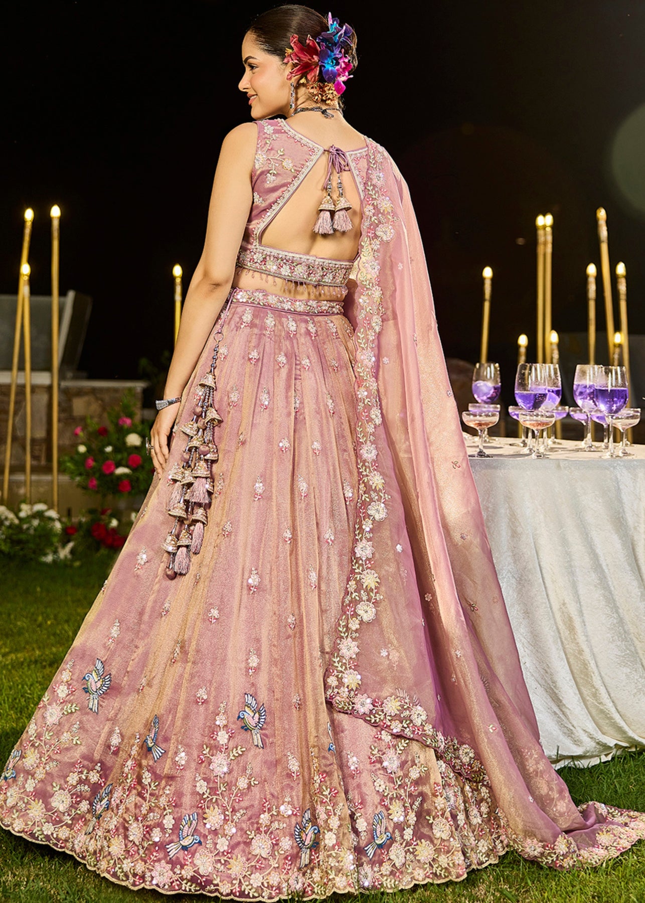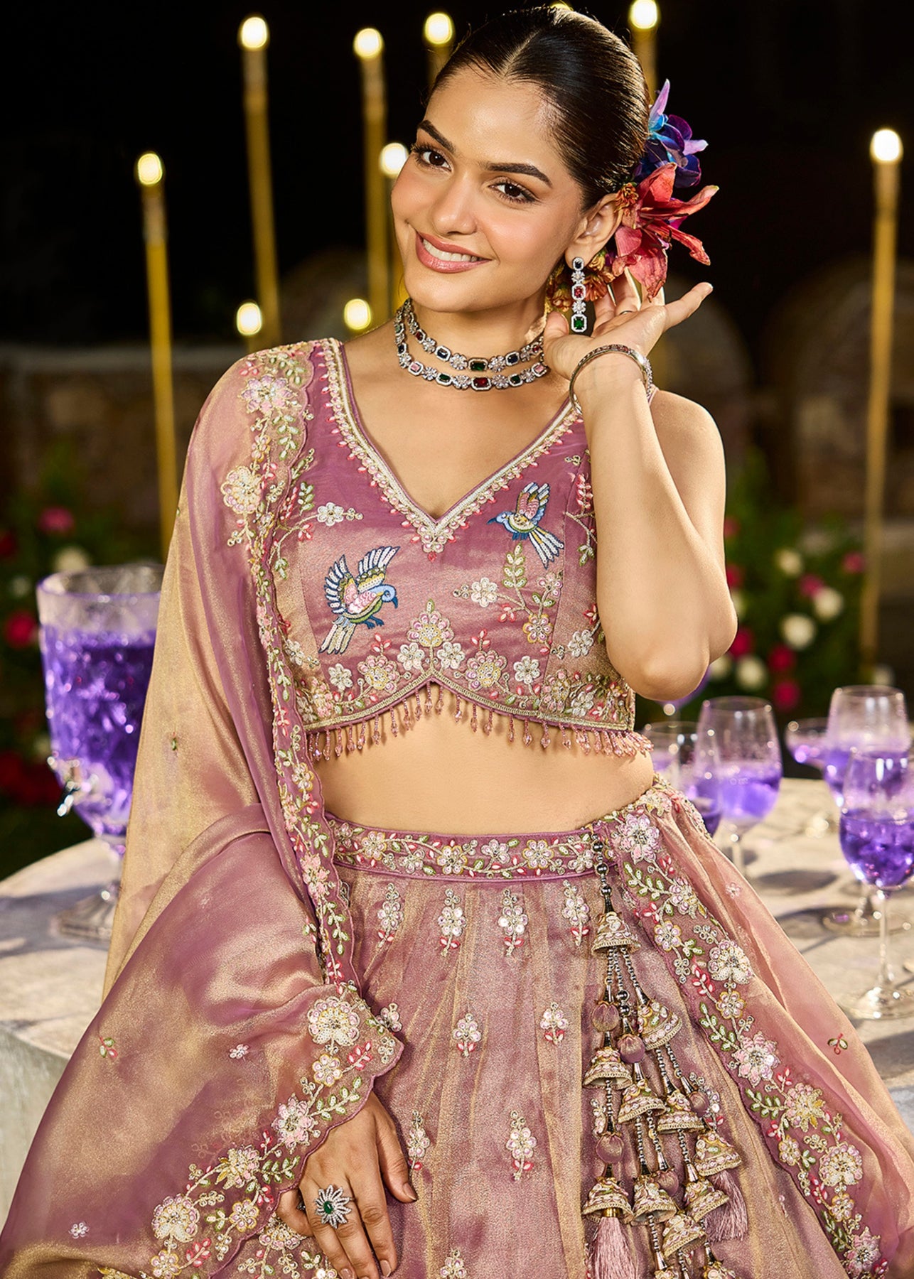 Lavender Tissue Lehenga Choli with Beads & Sequince Embroidered