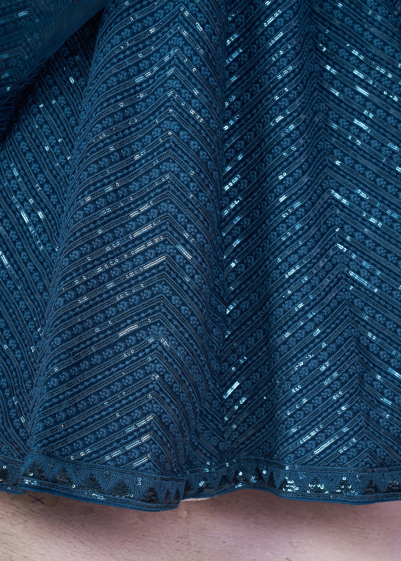 Teal Blue Georgette Lehenga Choli With Sequins And Thread Embroidery Work