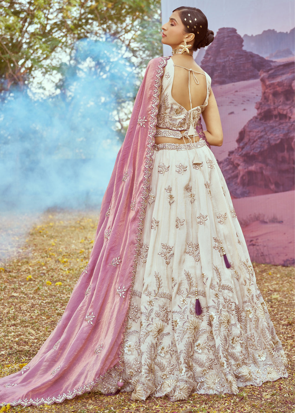 Off White Georgette Lehenga Choli with Thread, Sequins, Zari and Zarkan work