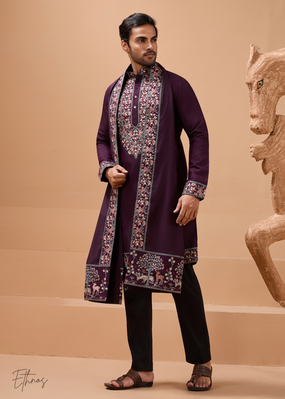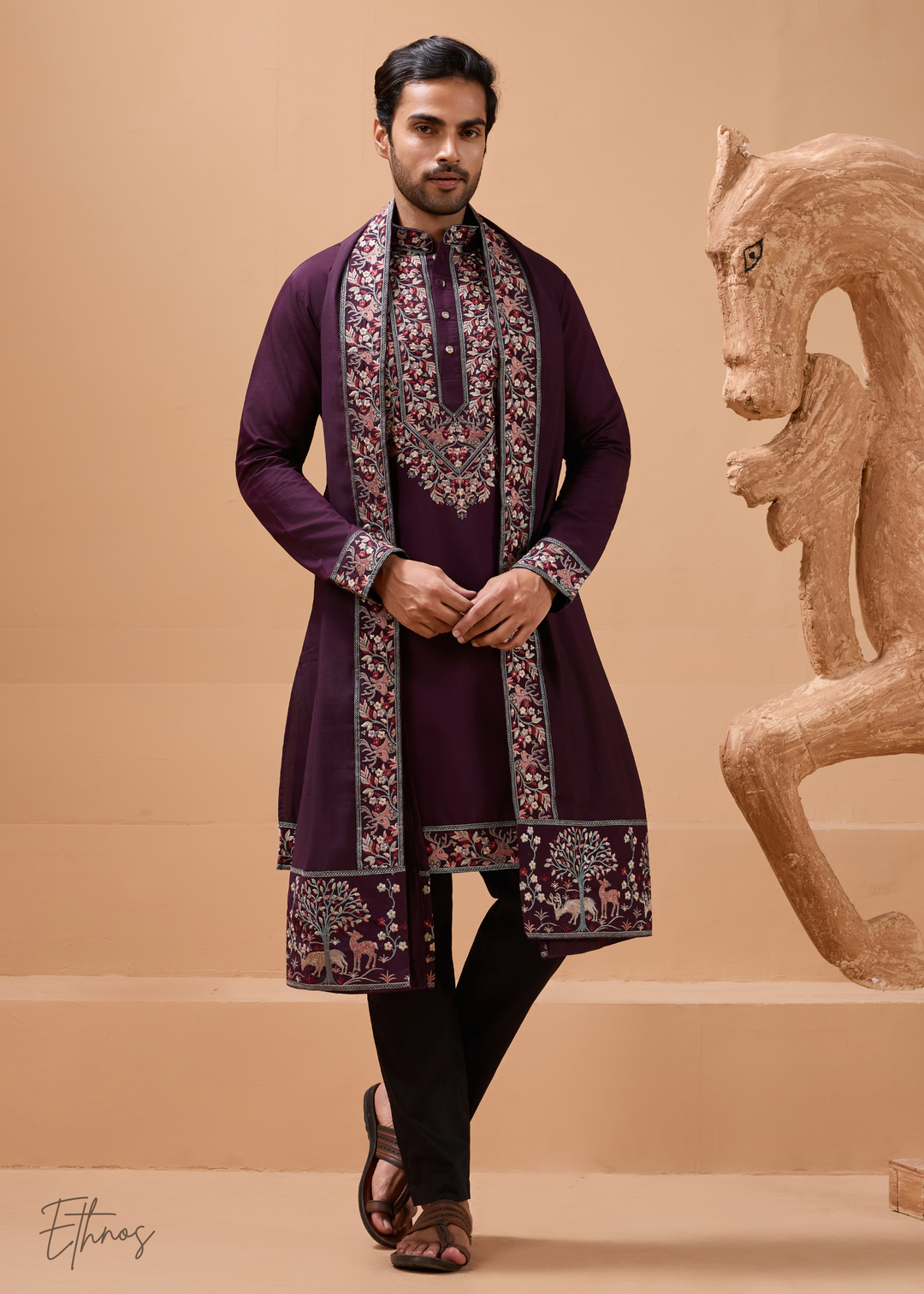 Dusty Plum Mens Silk Kurta with Pant