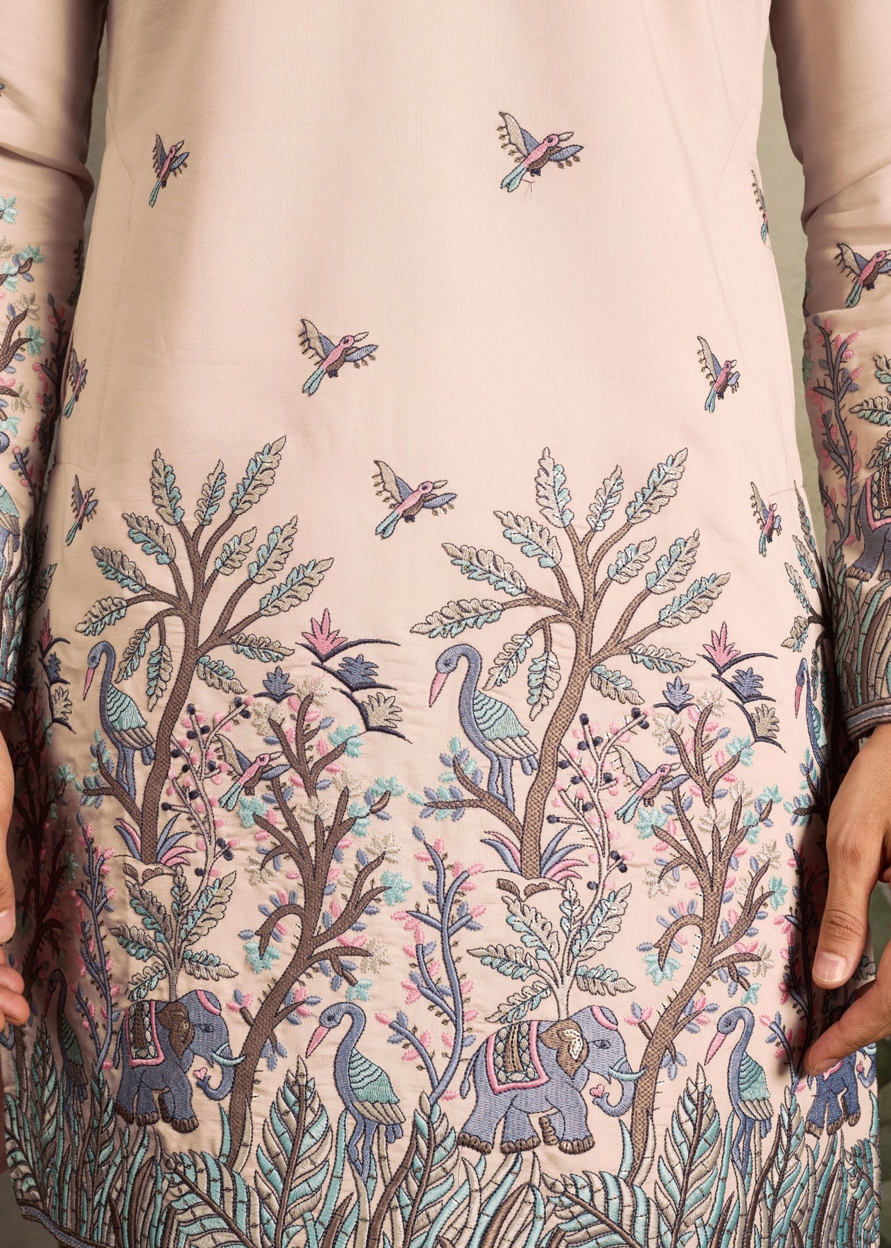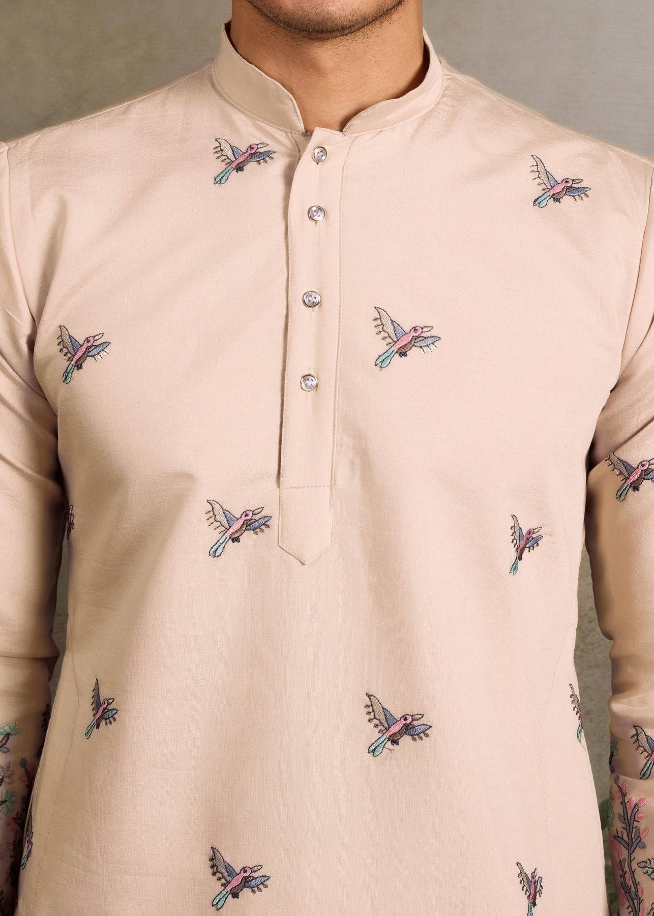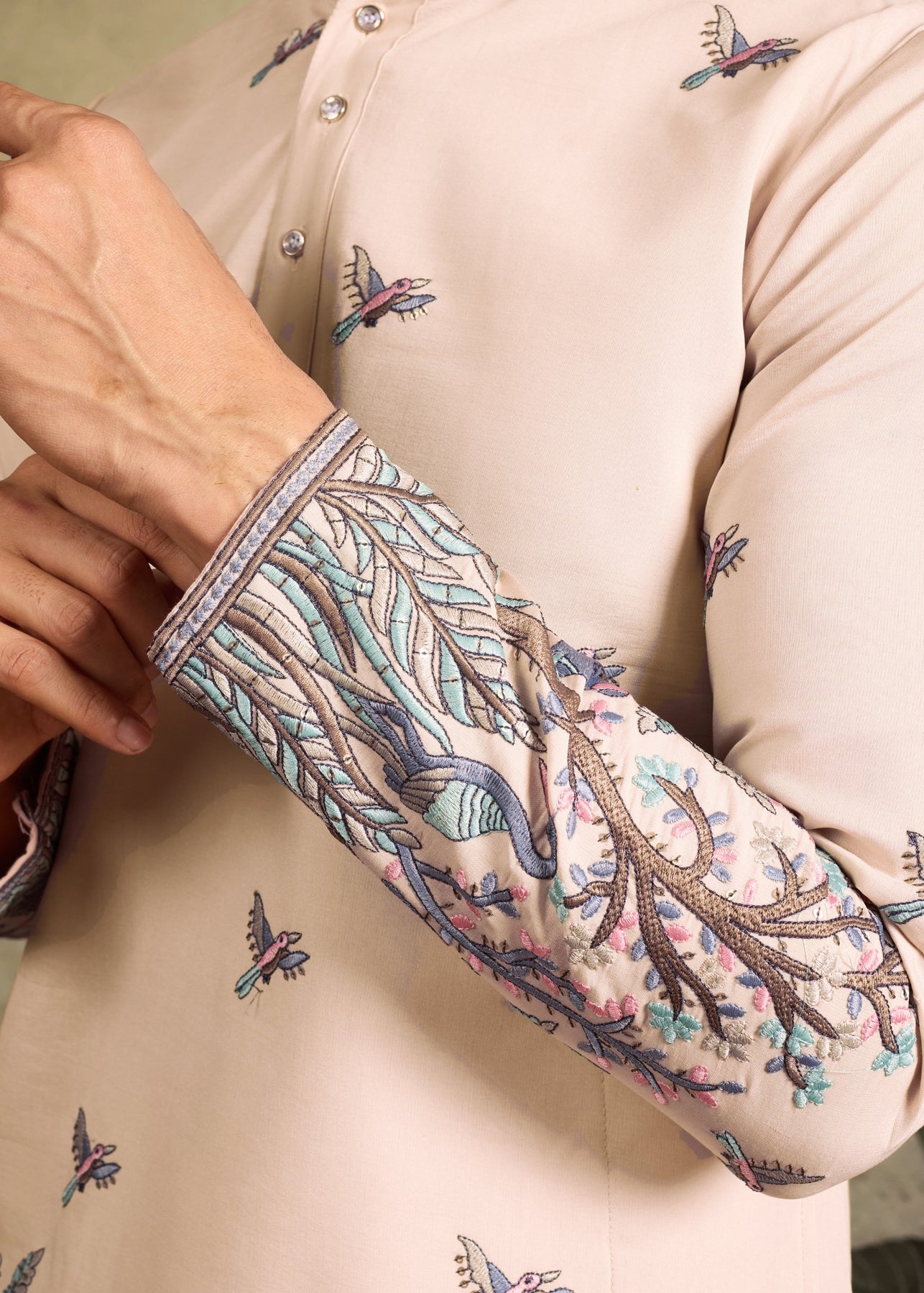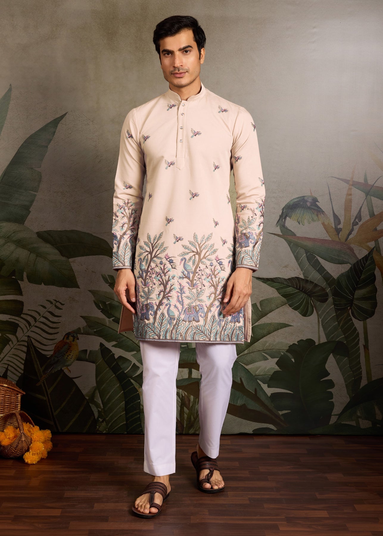 The Blush Nude Men’s Silk Kurta with Pant is a refined ethnic ensemble blending traditional silhouettes with modern minimalism. With its soft nude-pink tone, straight cut, and luxurious viscose-silk fabric, it offers a tasteful option for occasions where you want to look elegant yet understated. It’s a wardrobe piece that stands out not by loud decoration but by quality fabric, thoughtful cut, and subtle colour — perfect if you appreciate quiet luxury in your ethnic wear.