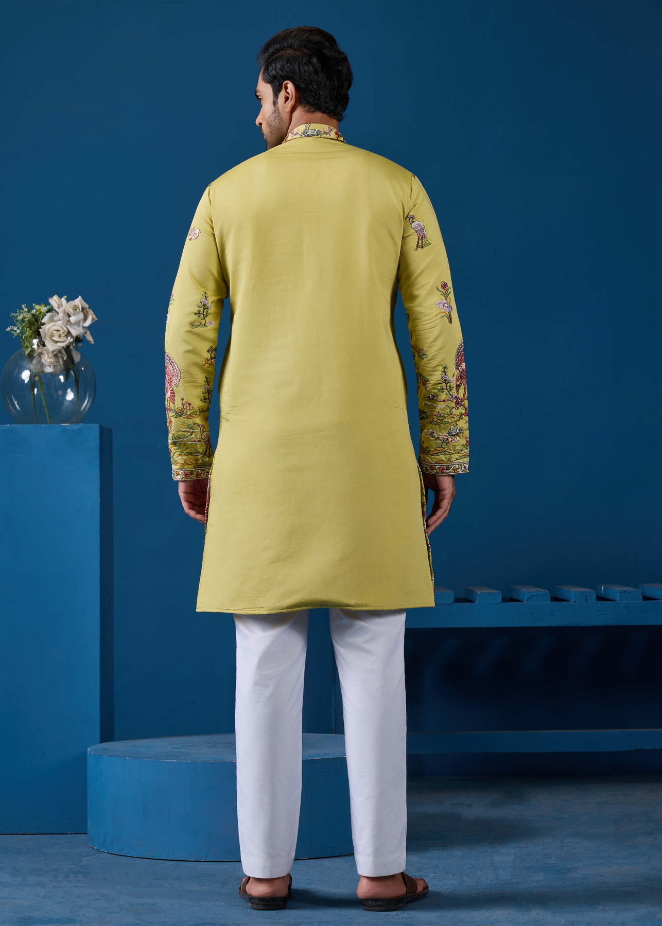 Chartreuse Yellow Mens Wear Kurta with Pant