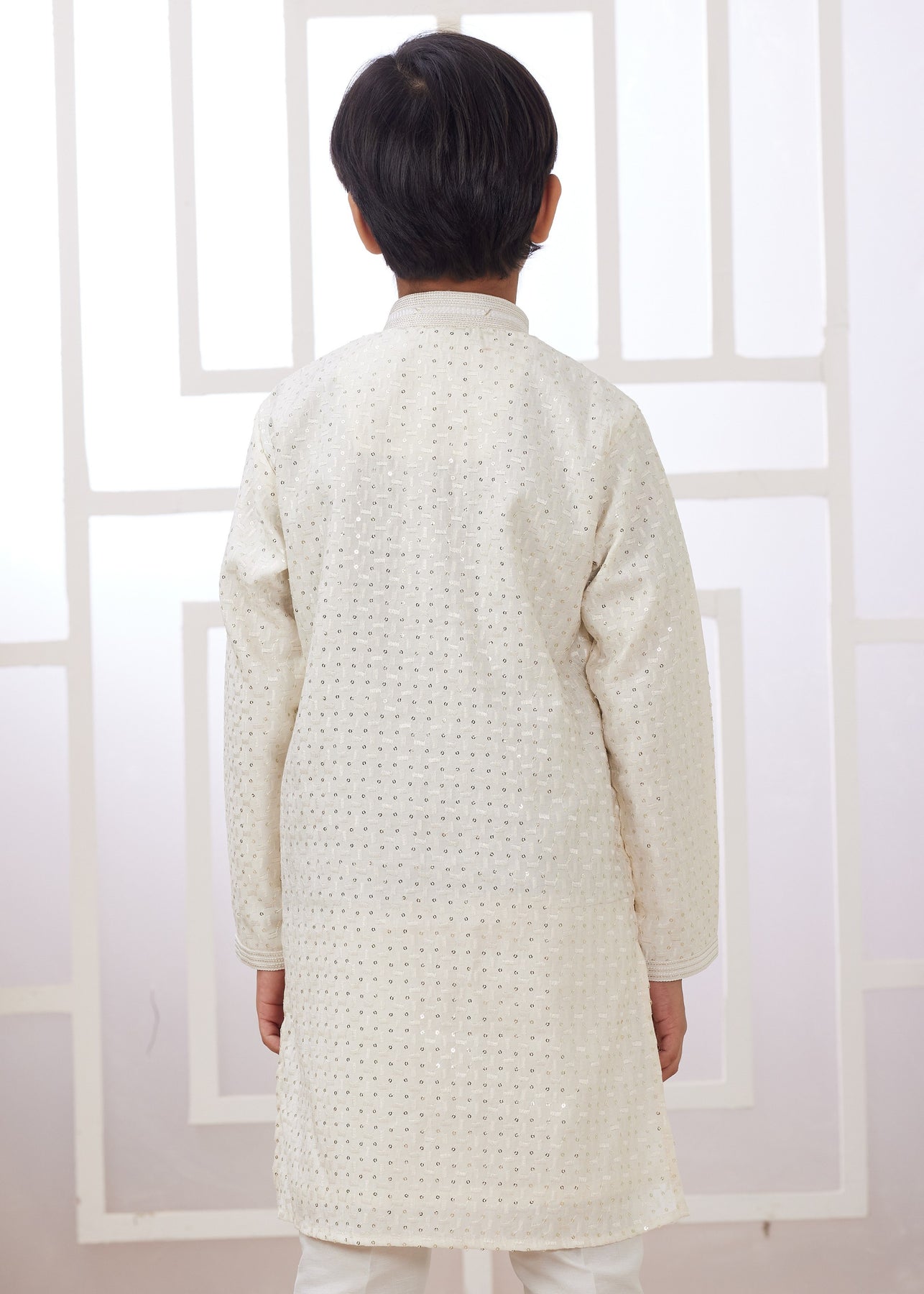 Pearl White Silk Kurta Set With Thread Embroidery Work