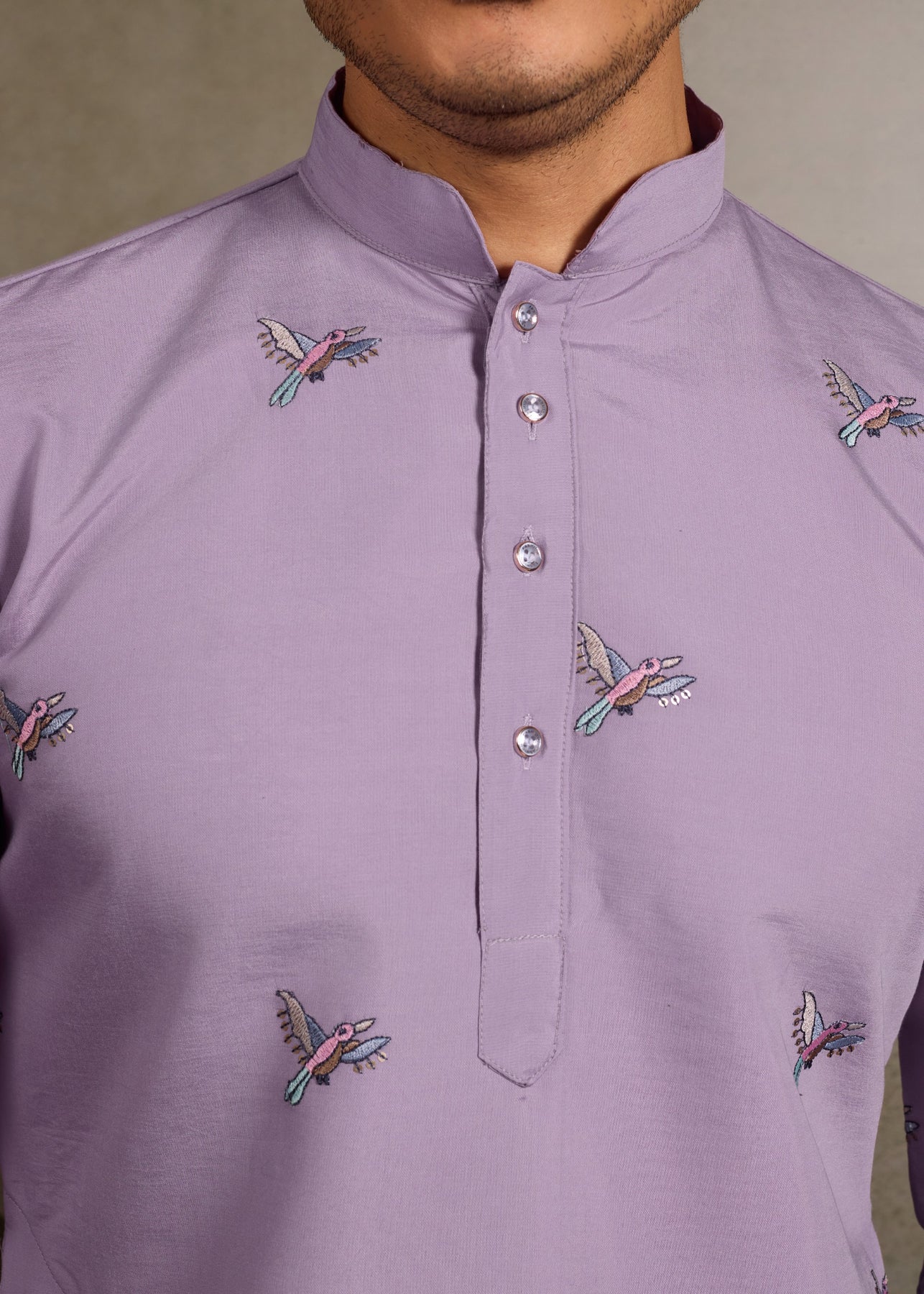 Step into subtle elegance with this lavender-hued ensemble, designed to blend traditional Indian menswear aesthetics with a modern, refined sensibility. The soft lavender tone offers a soothing, graceful presence — ideal for daytime events, festive gatherings, or even semi-formal celebrations. The paired kurta and pant set ensures a coordinated, polished look that requires minimal styling fuss.