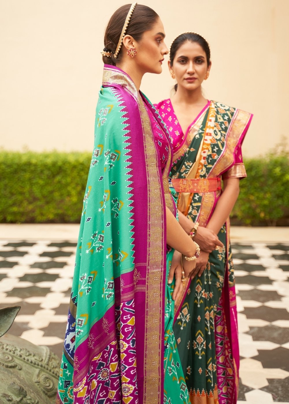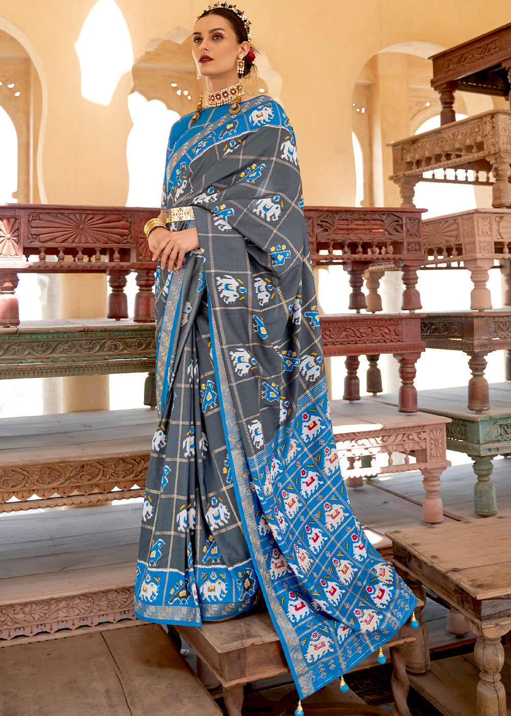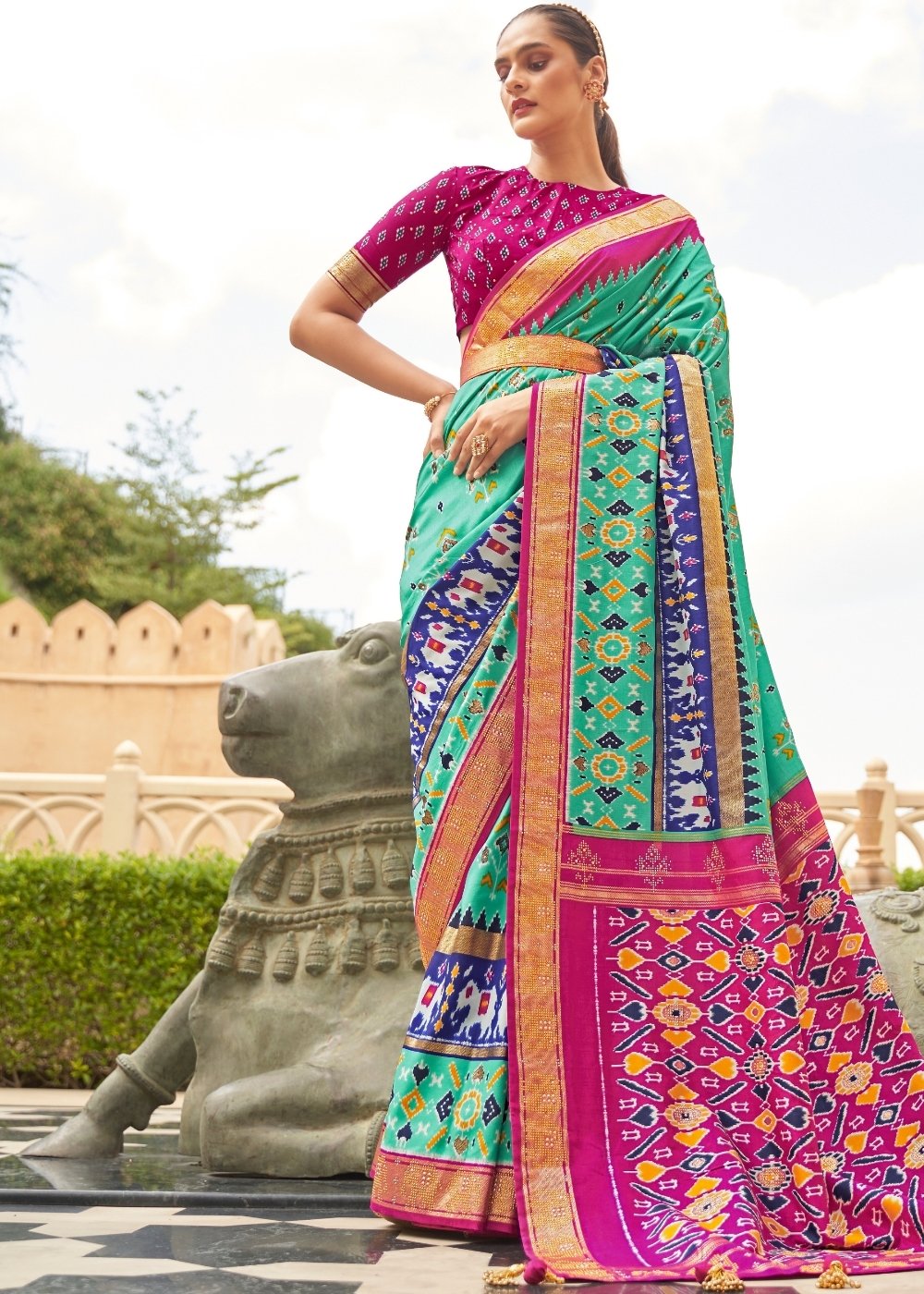 Turquoise Blue Patola Printed Silk Saree