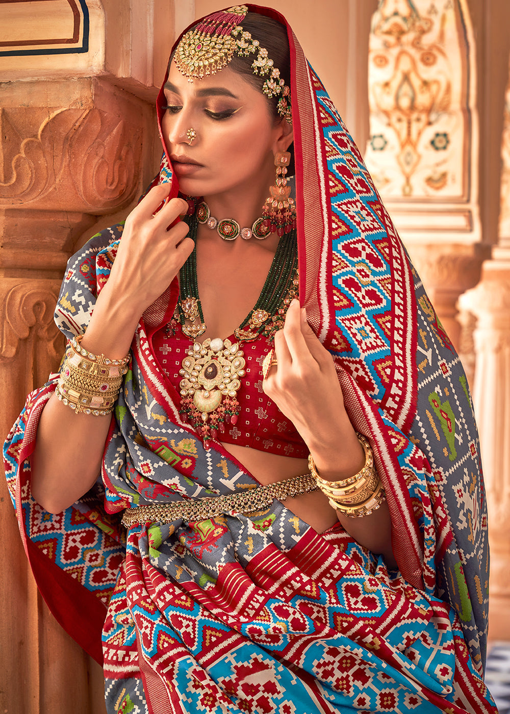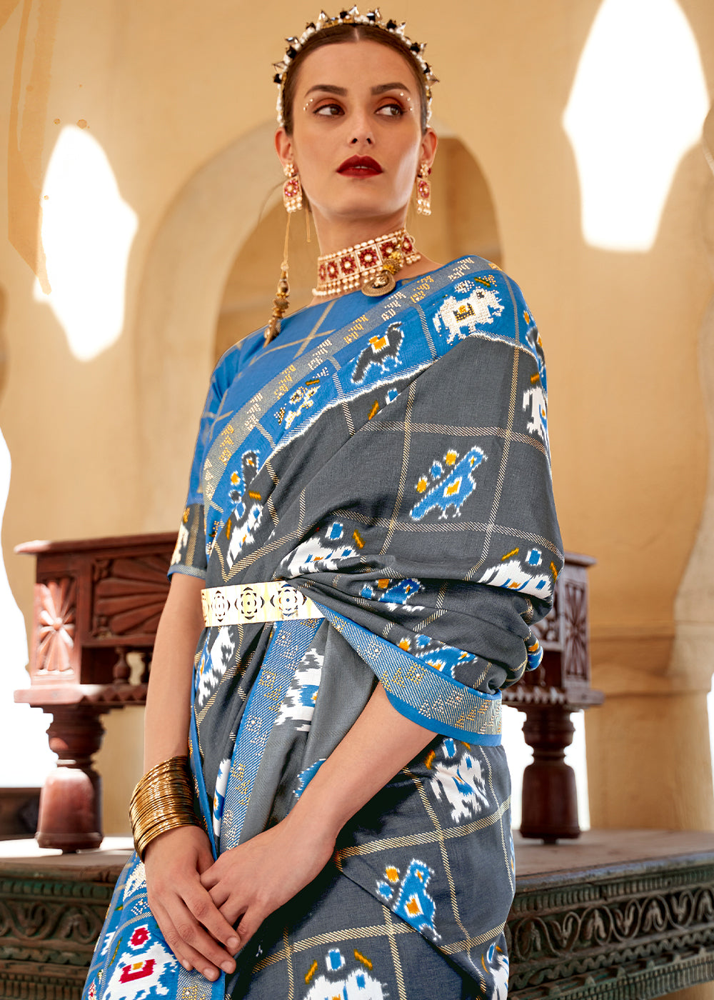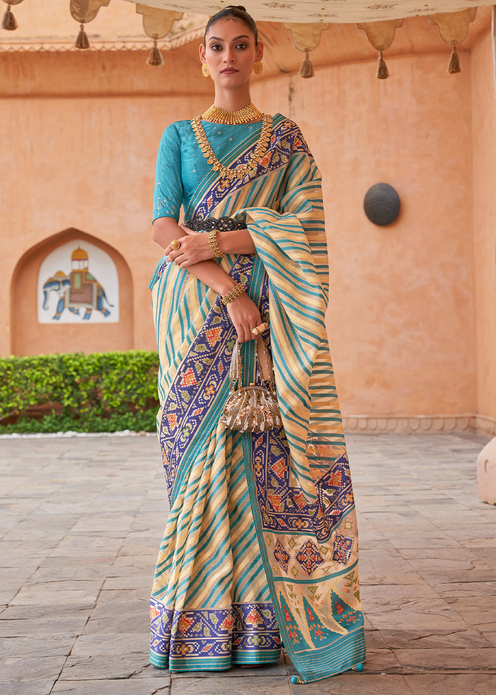 Turquoise Blue Patola Printed Silk Saree