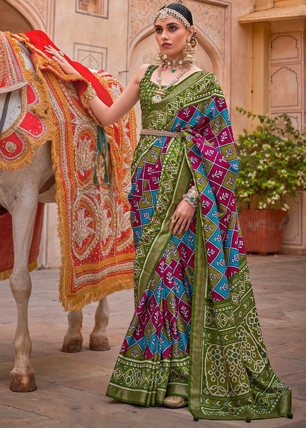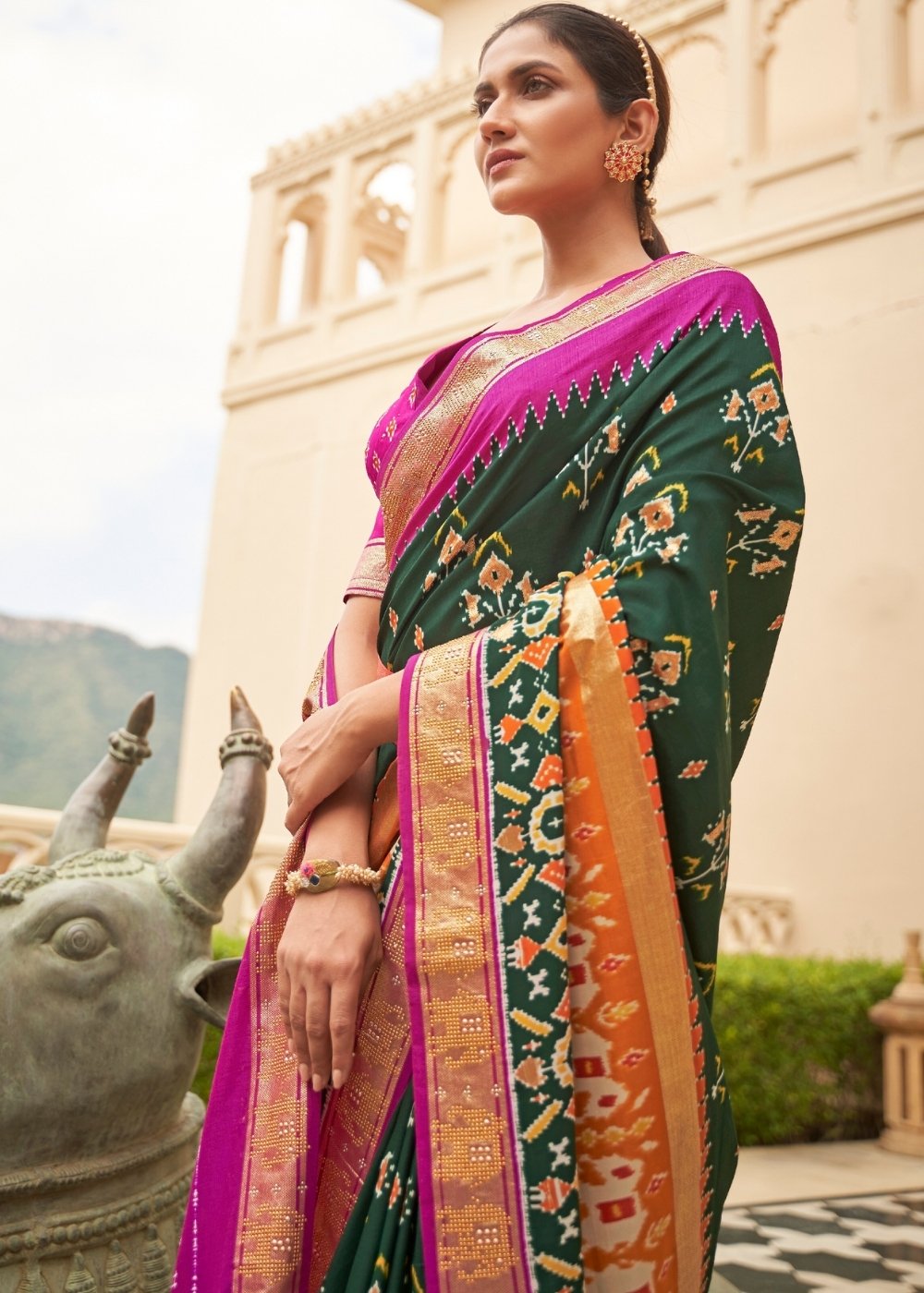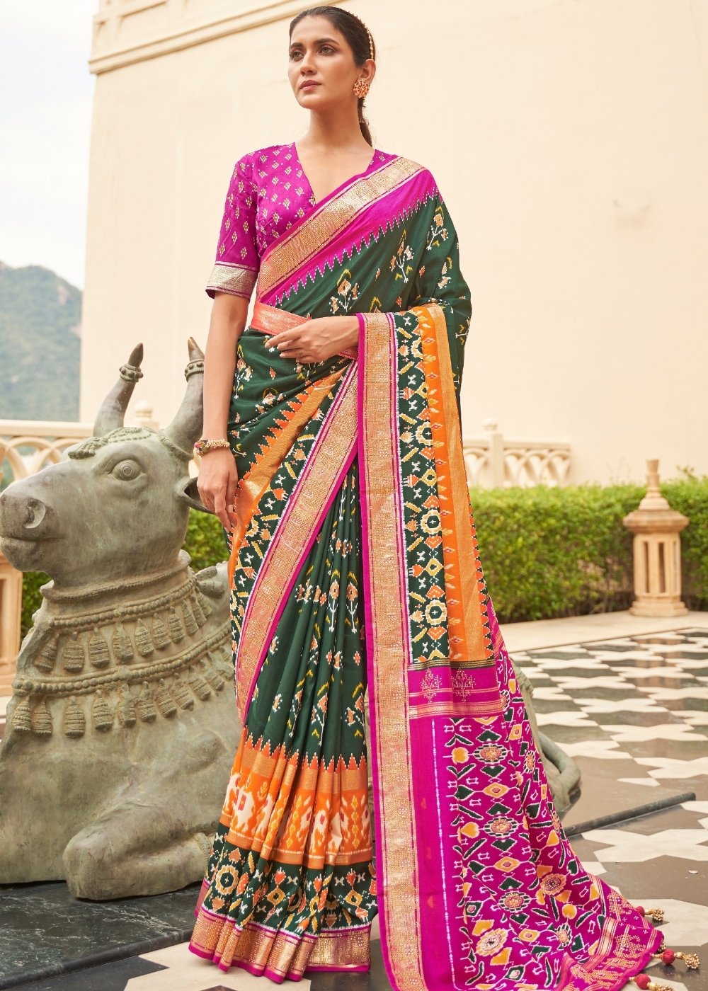 Shades Of Green Printed Patola Tussar Silk Saree
