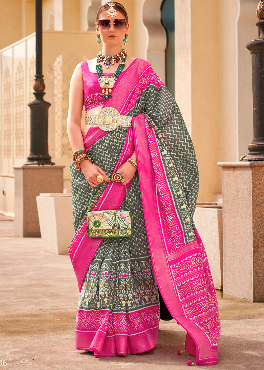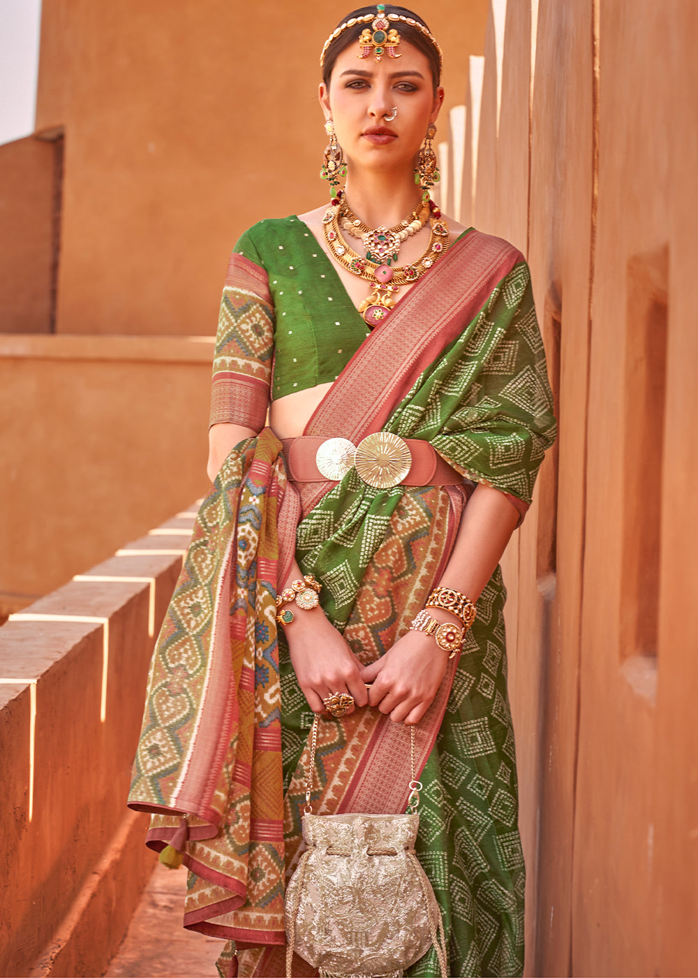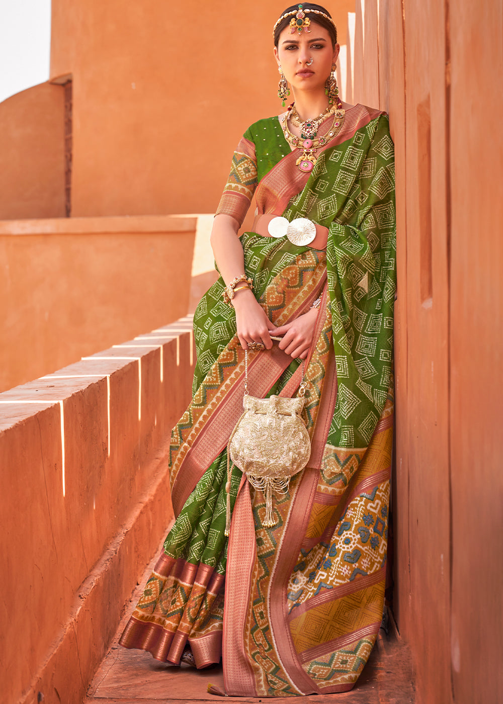 Shades Of Green Printed Patola Tussar Silk Saree