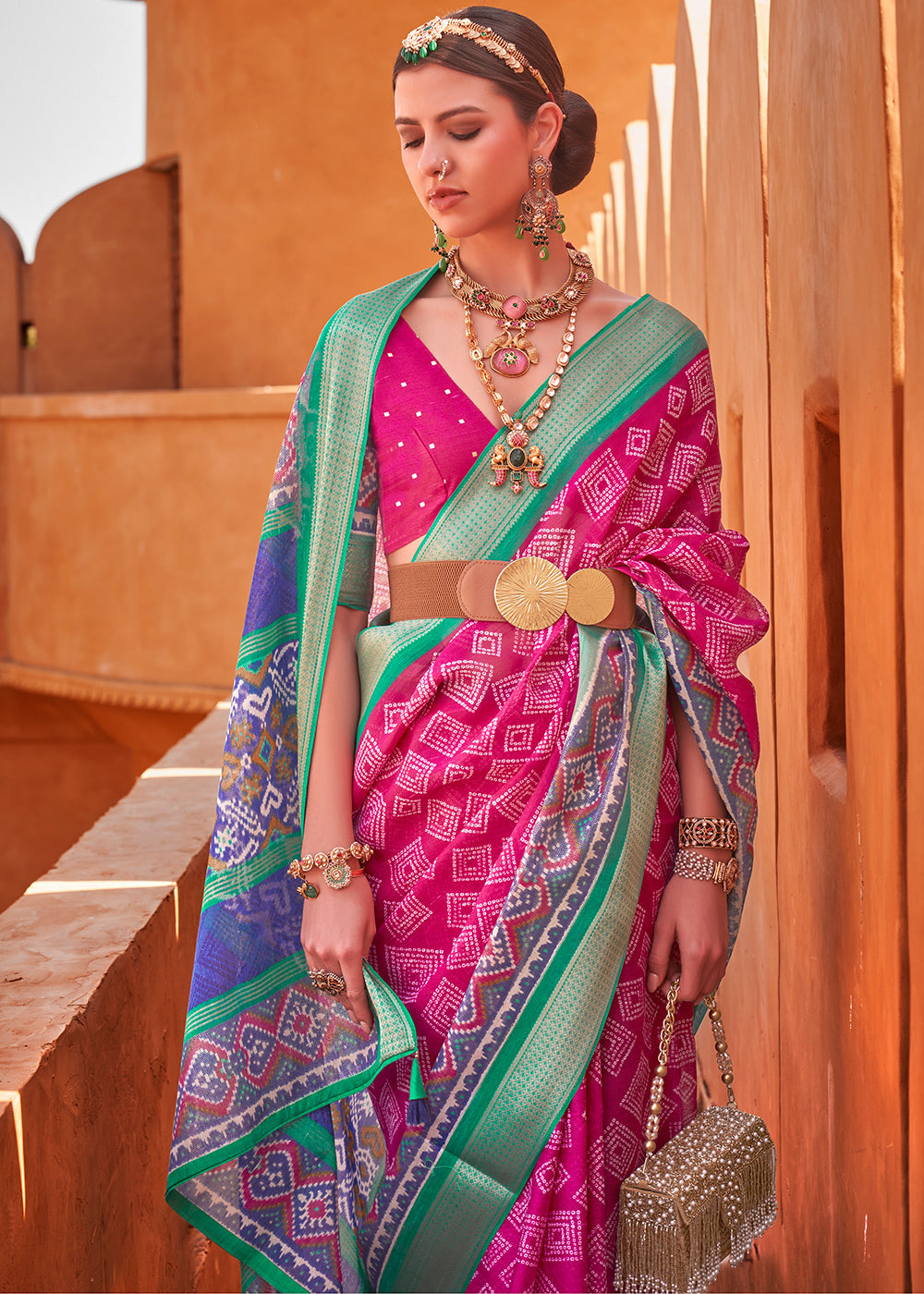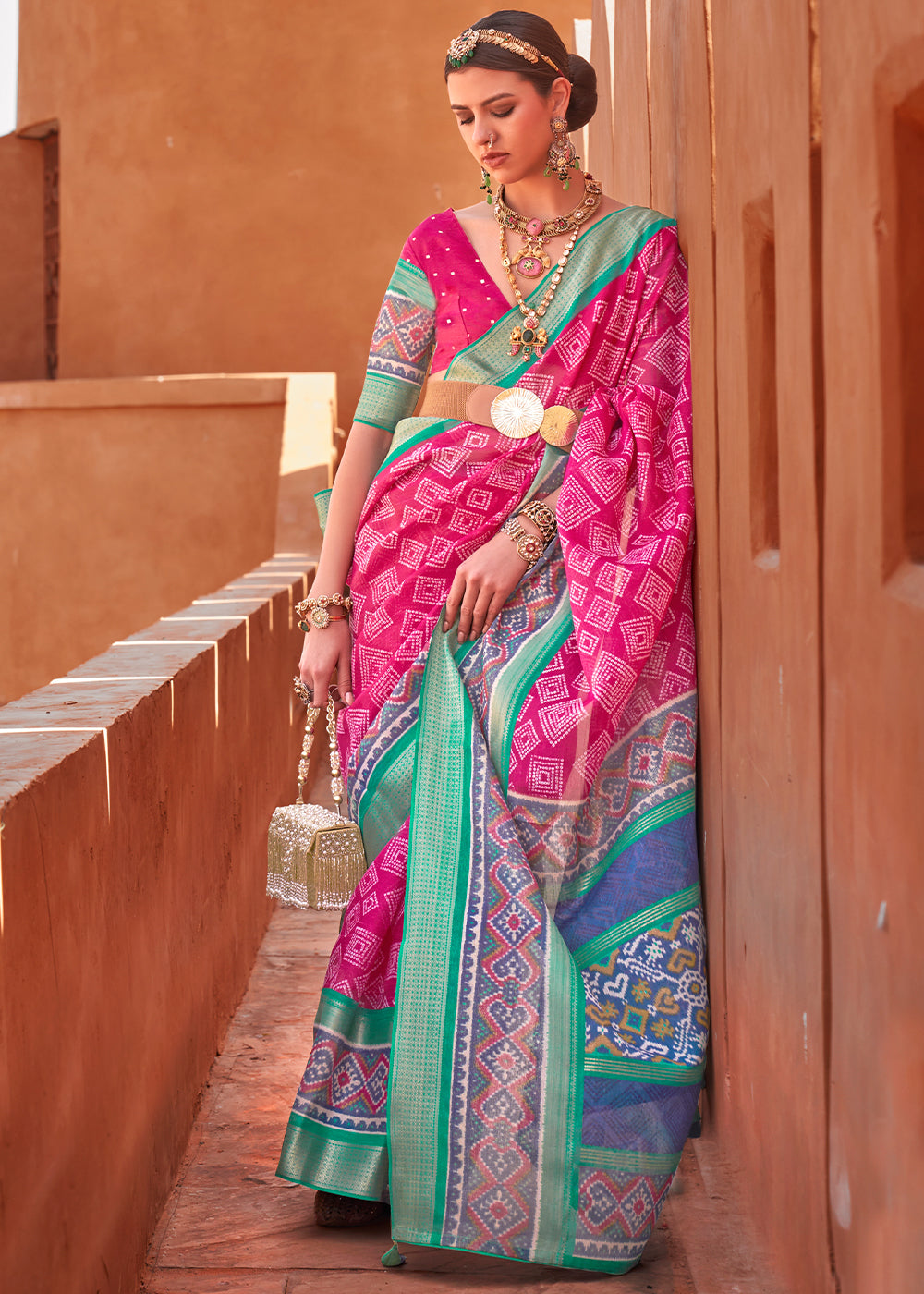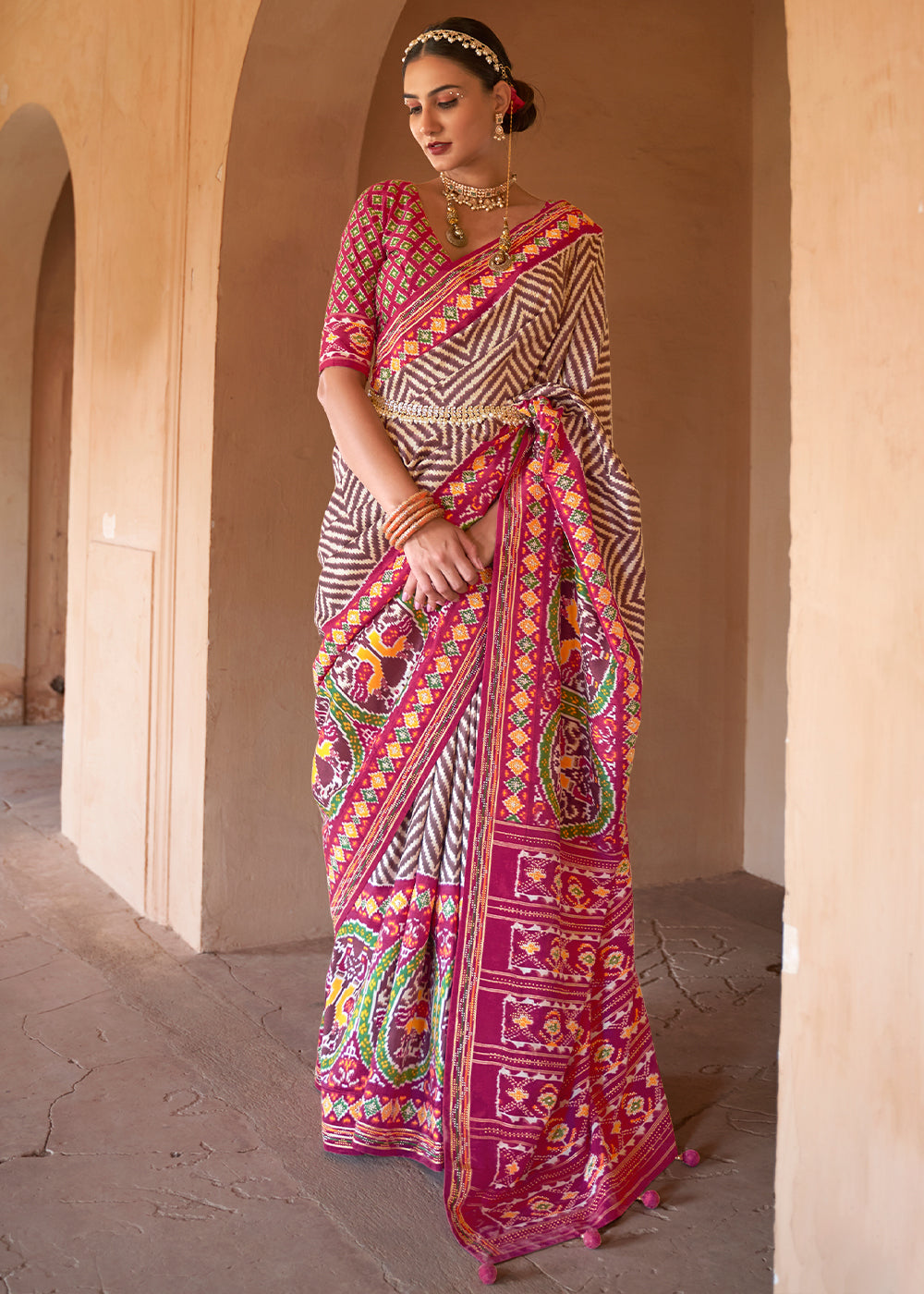 Hot Pink Patola Printed Silk Saree