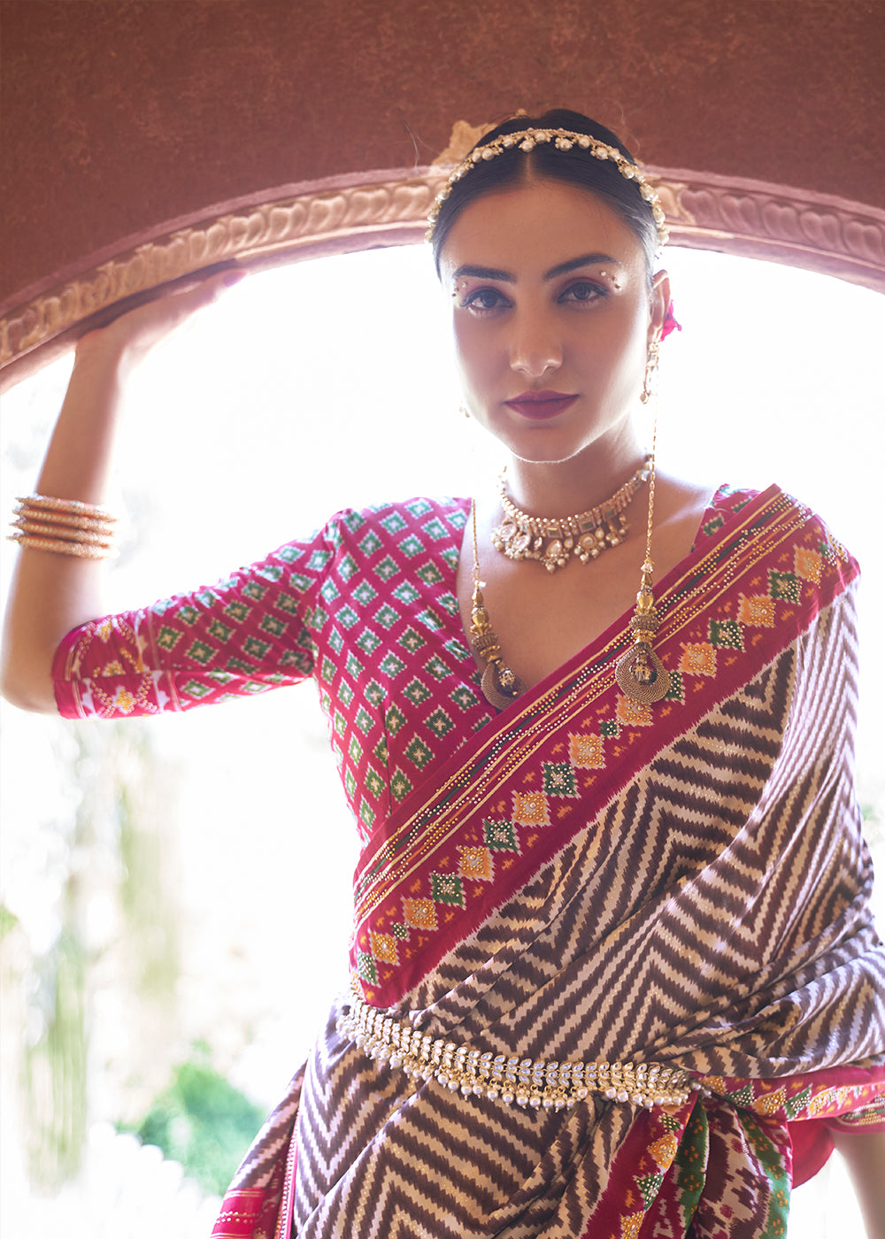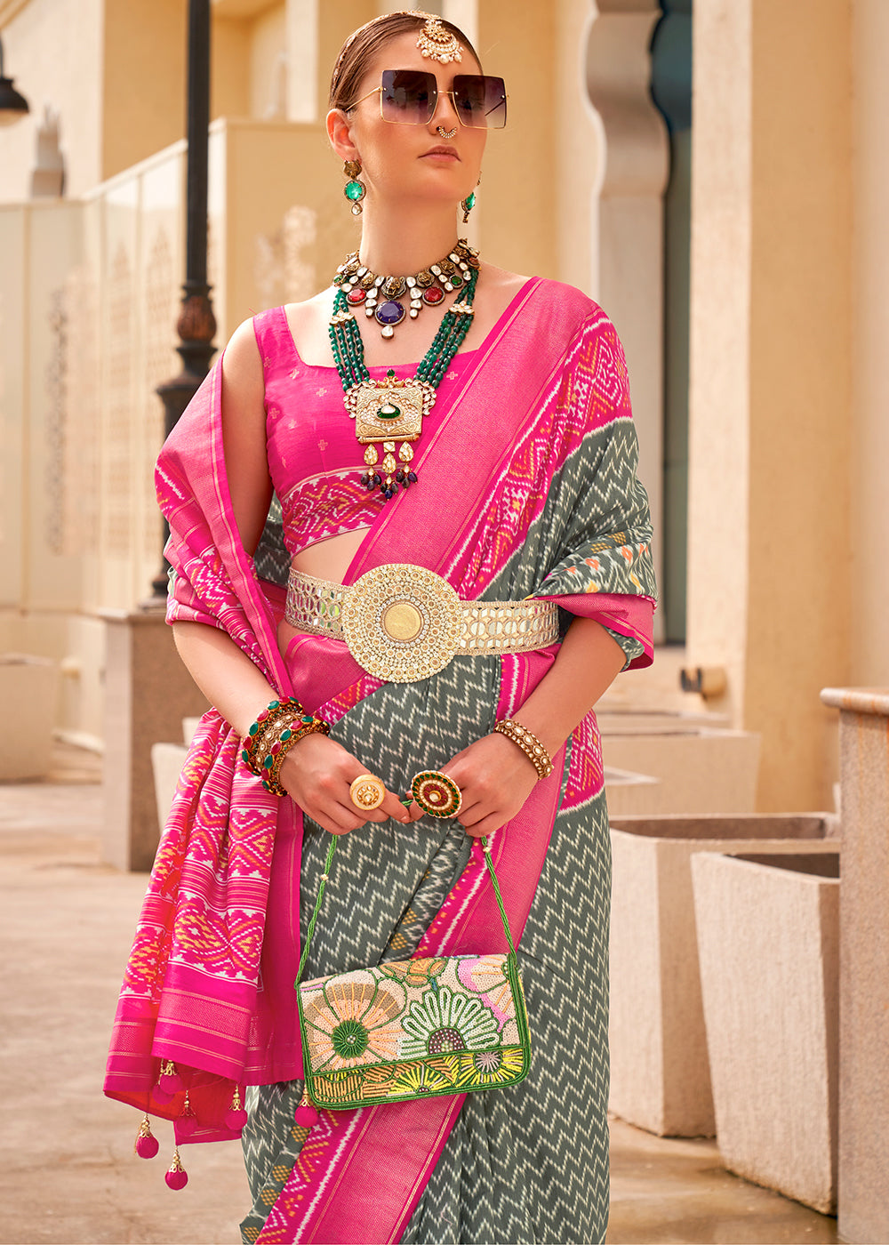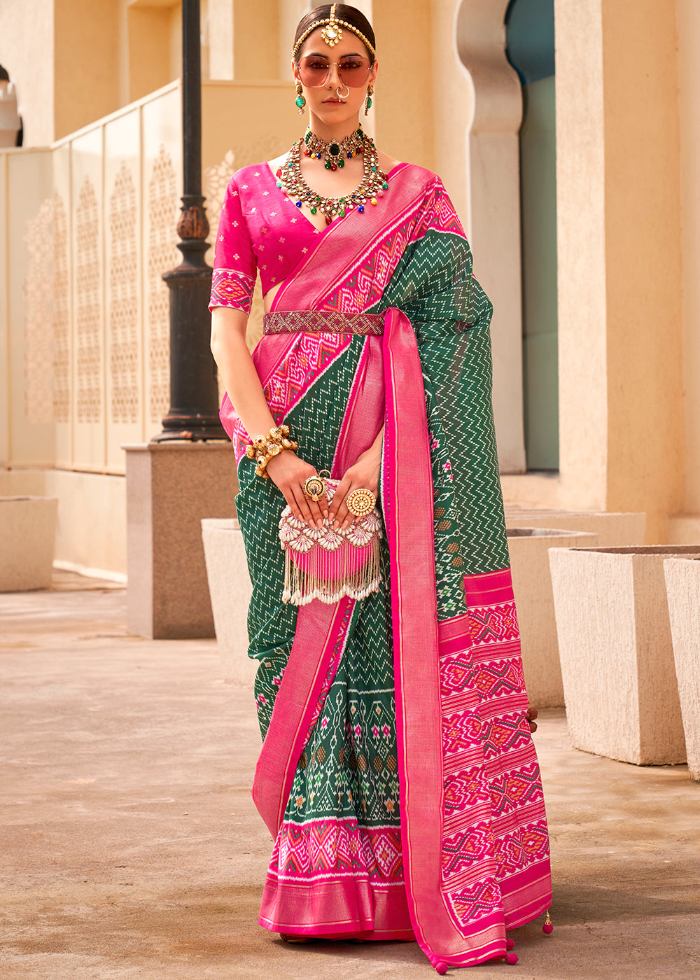 Hot Pink Patola Printed Silk Saree