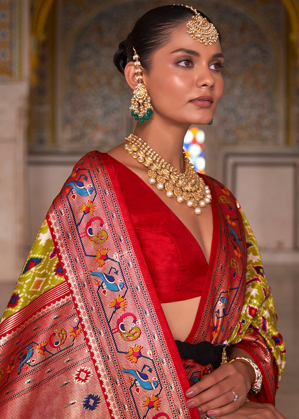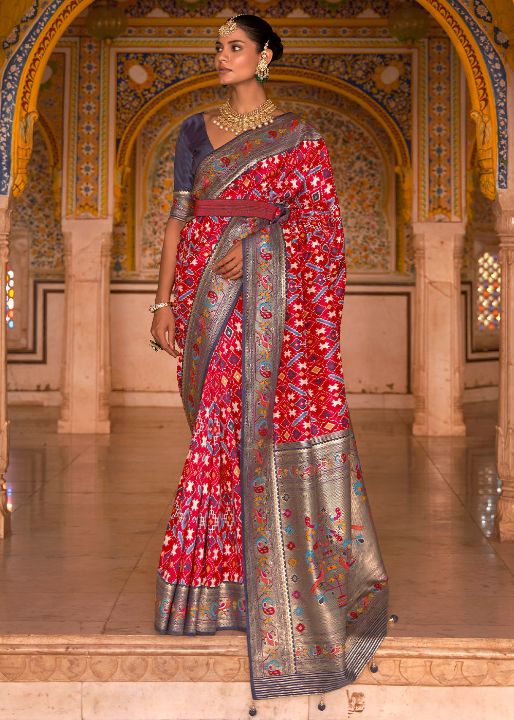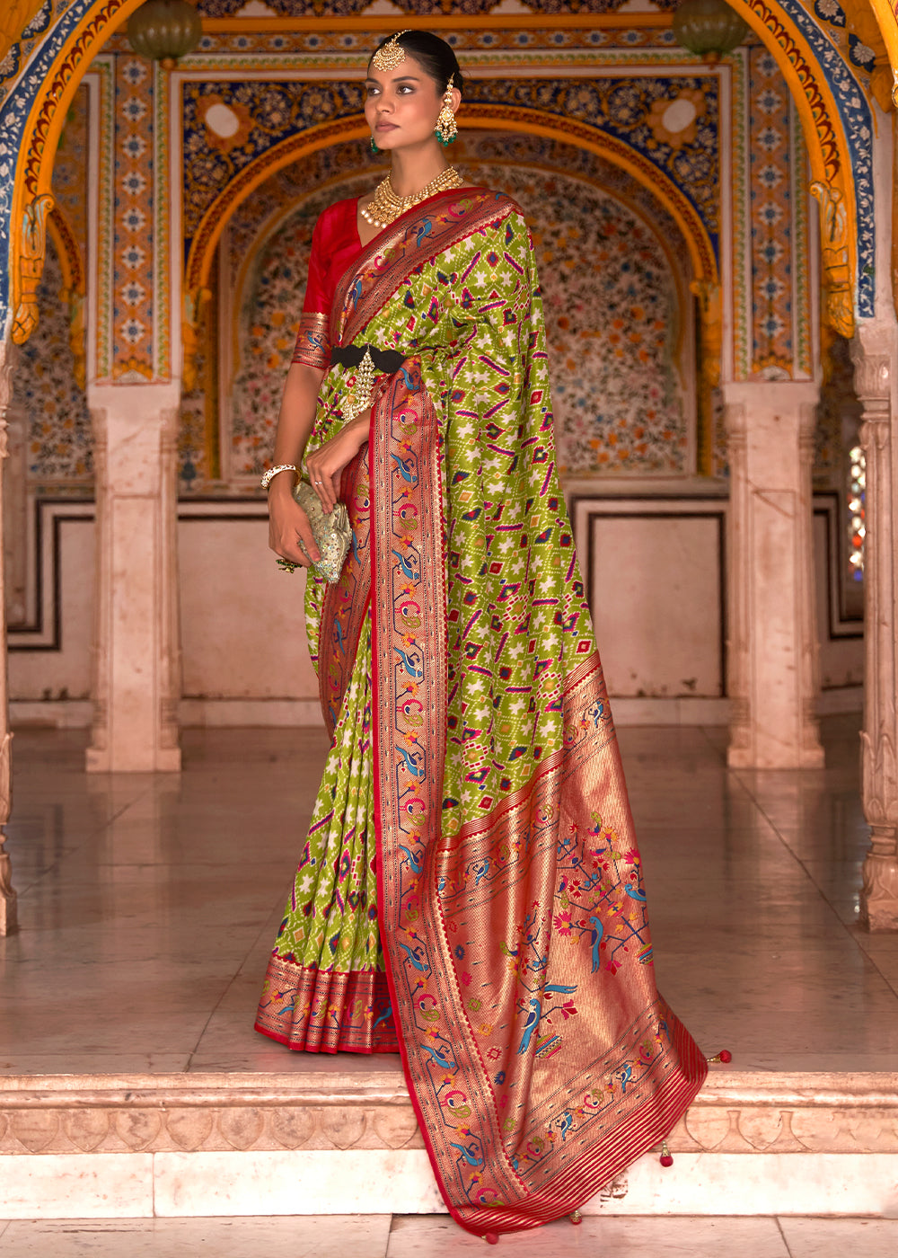 Red & Green Paithani Printed Silk Saree