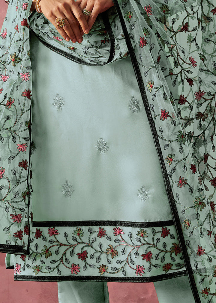 Aqua Blue Georgette Suit With Thread Embroidered Work