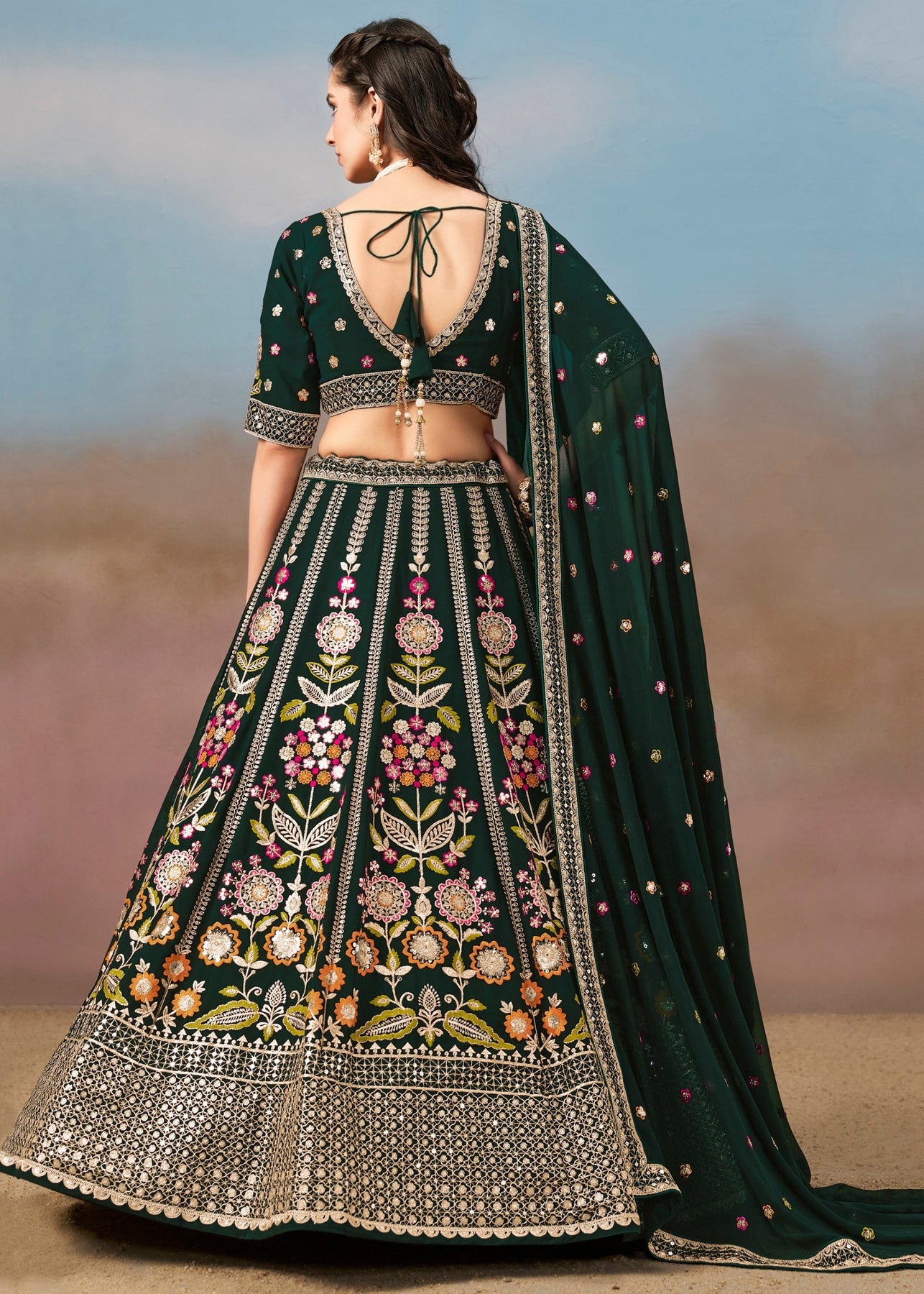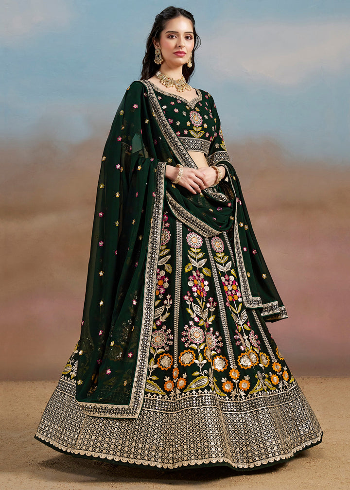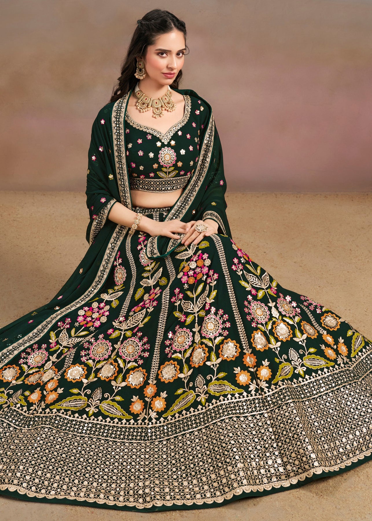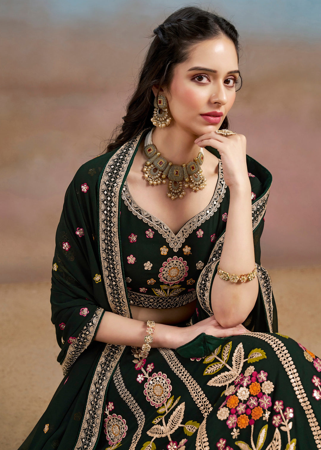Green Sequins And Zari With Dori And Resham Embroidery Work Georgette Lehenga
