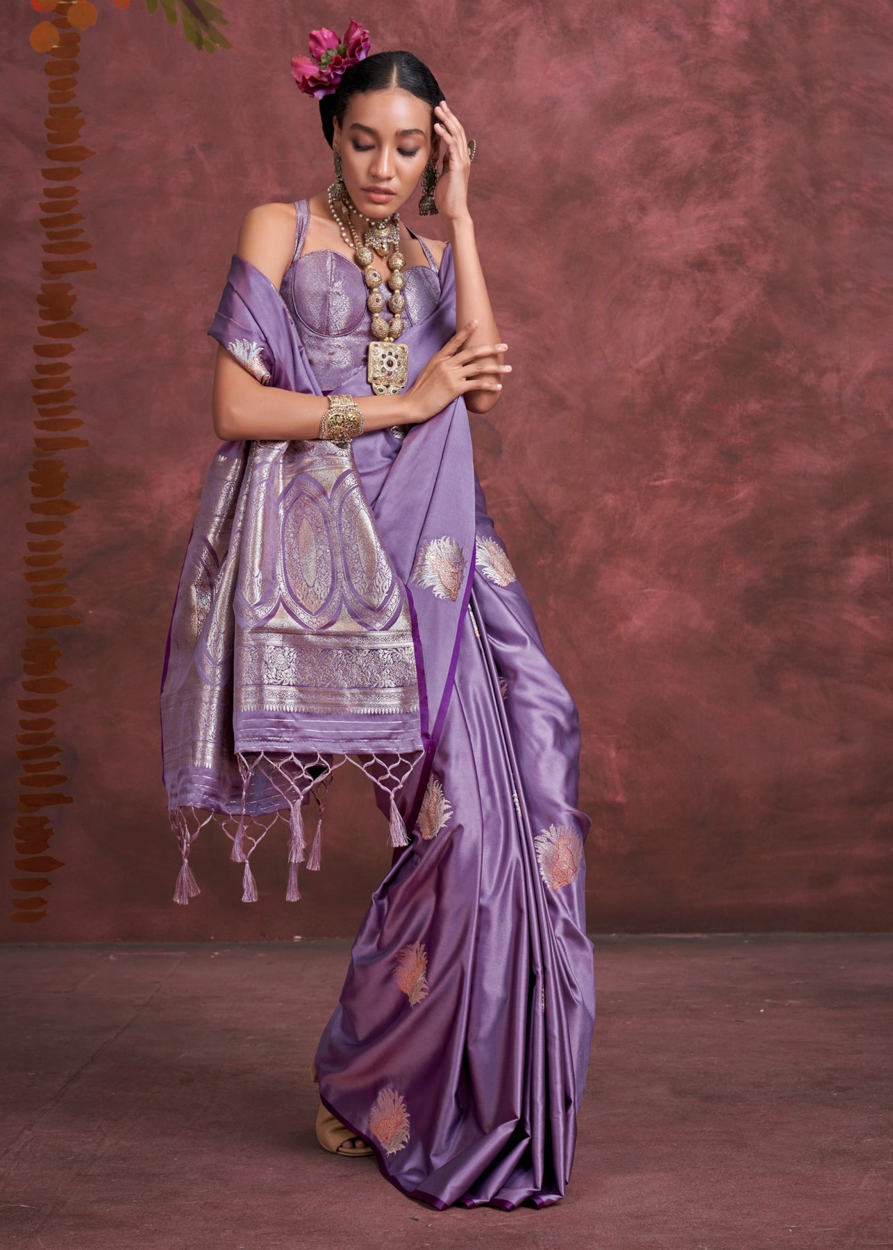 Sunset Purple Handloom Weaving Satin - Banarasi Zari Saree
