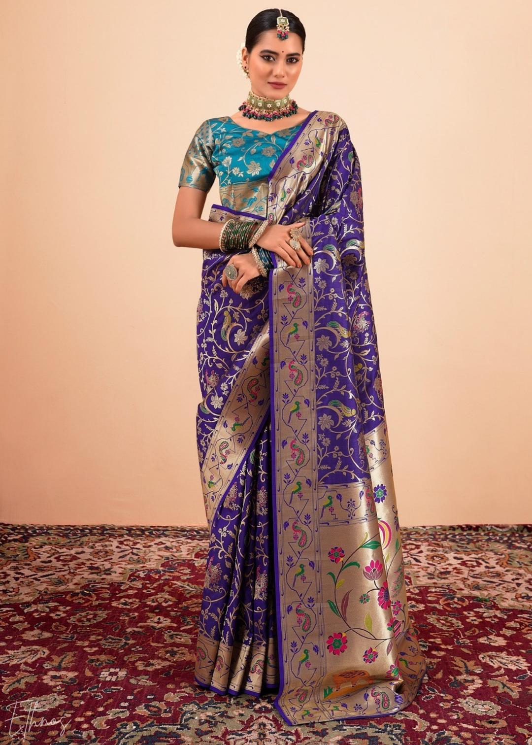 Midnight Indigo Menagerie Paithani Silk Saree