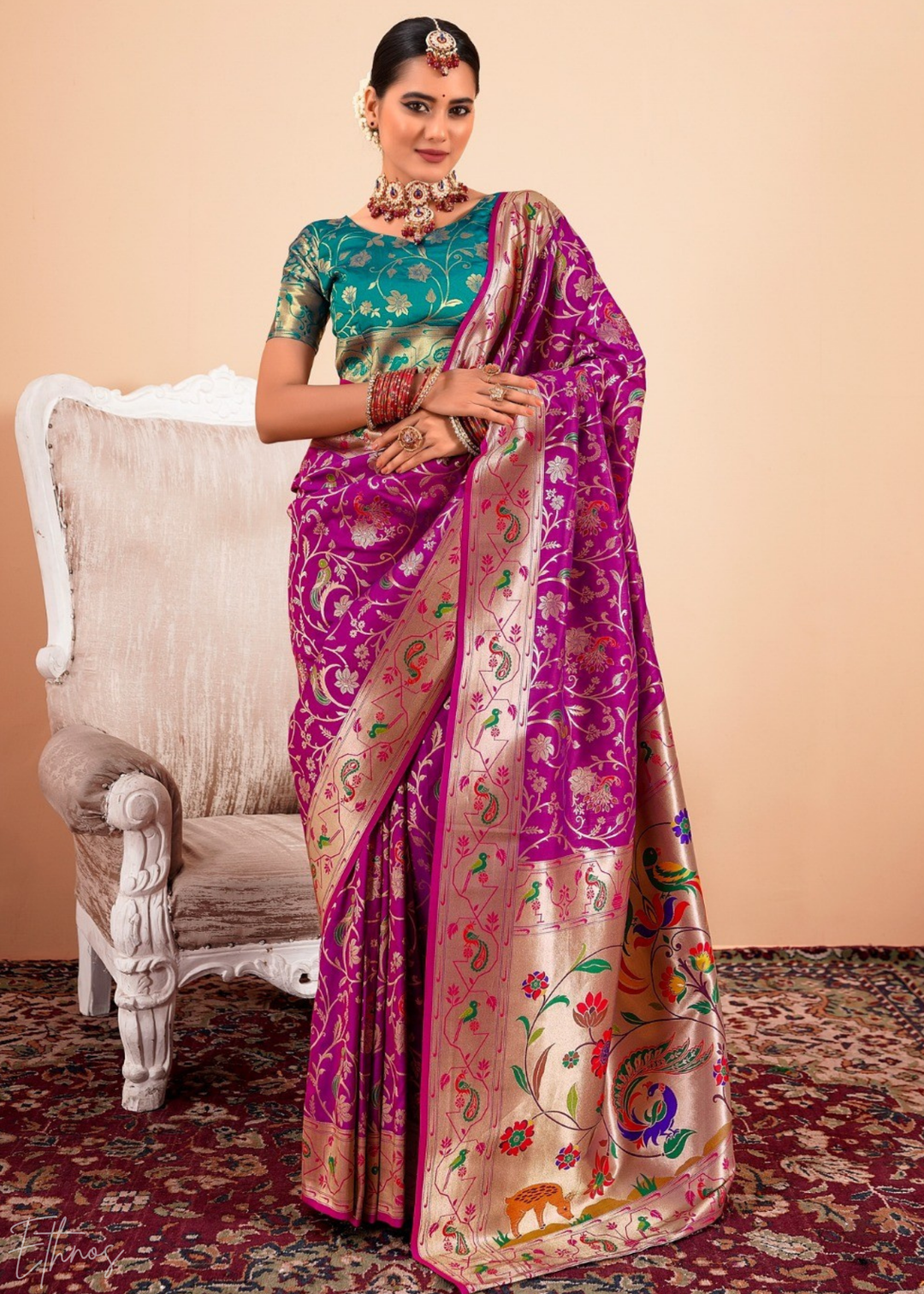 Royal Plum Menagerie Paithani Silk Saree