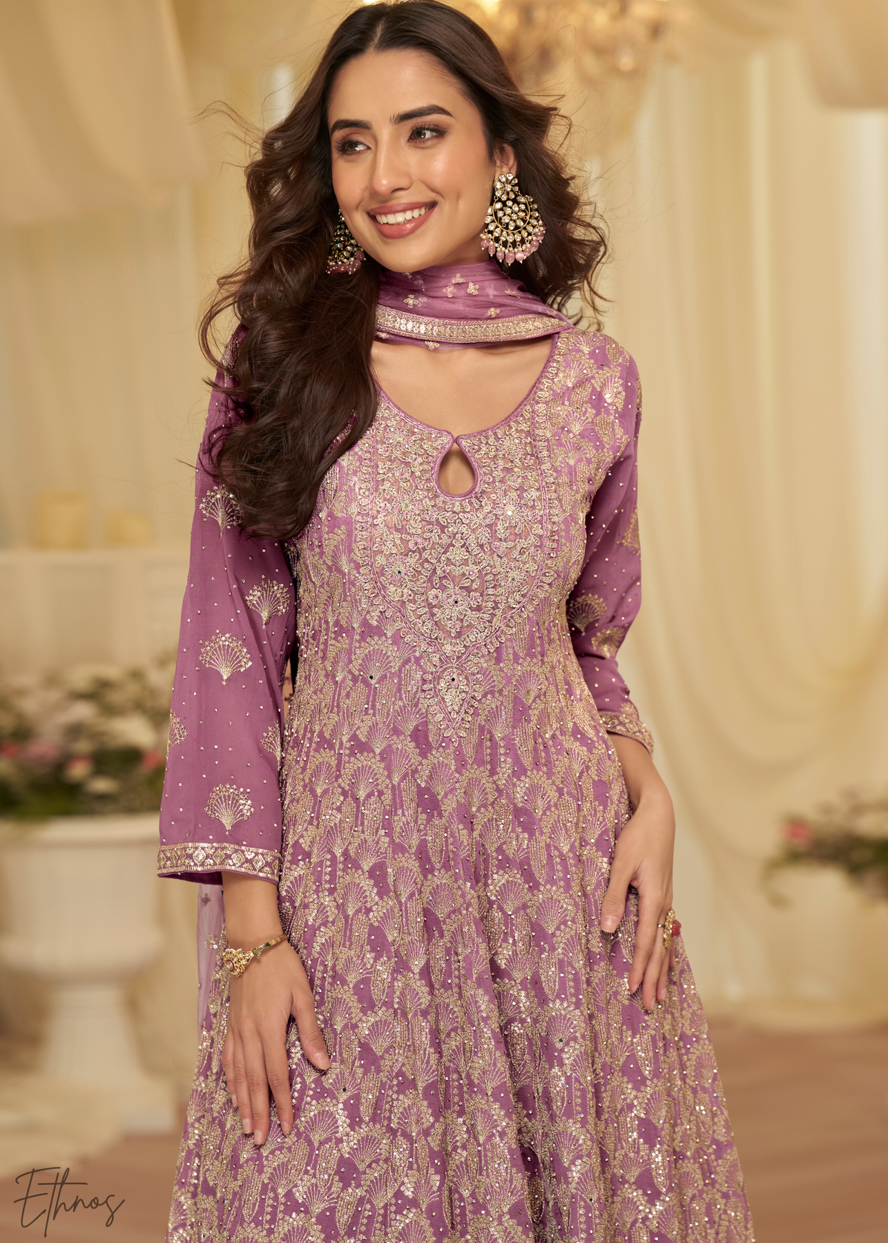 Orchid Purple Georgette Anarkali Palazzo Suit