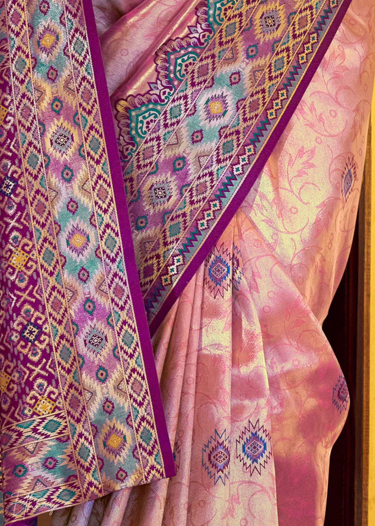 Blush Pink Tissue Patola Silk Saree