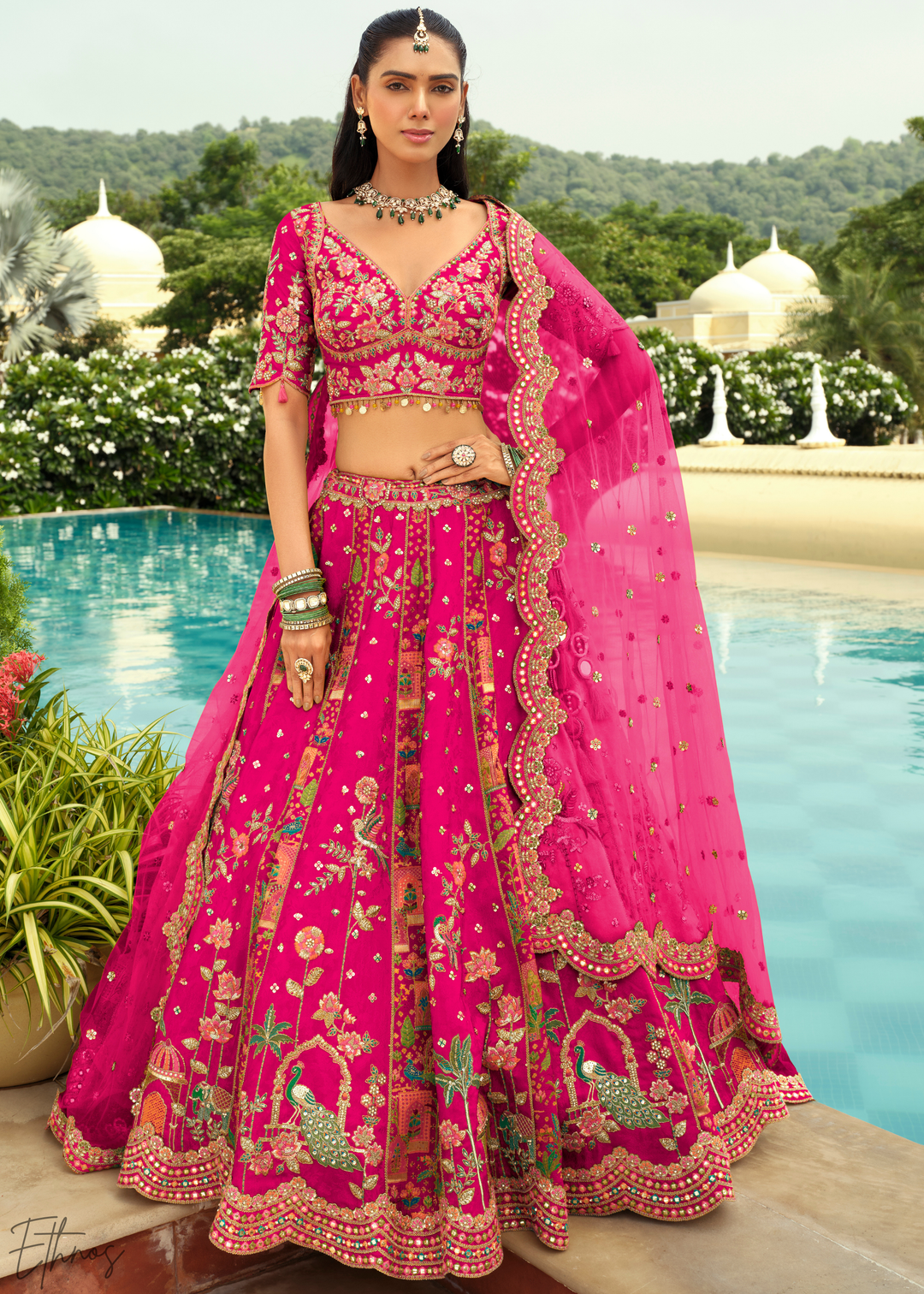 Hot Pink Embroidered Silk Lehenga