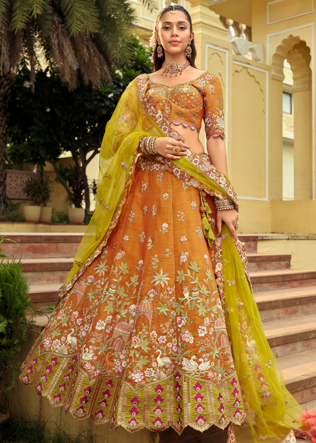 Sunkissed Orange Embroidered Silk Lehenga