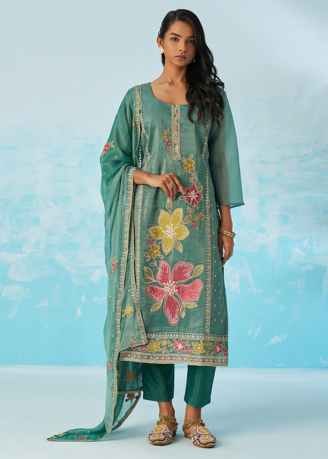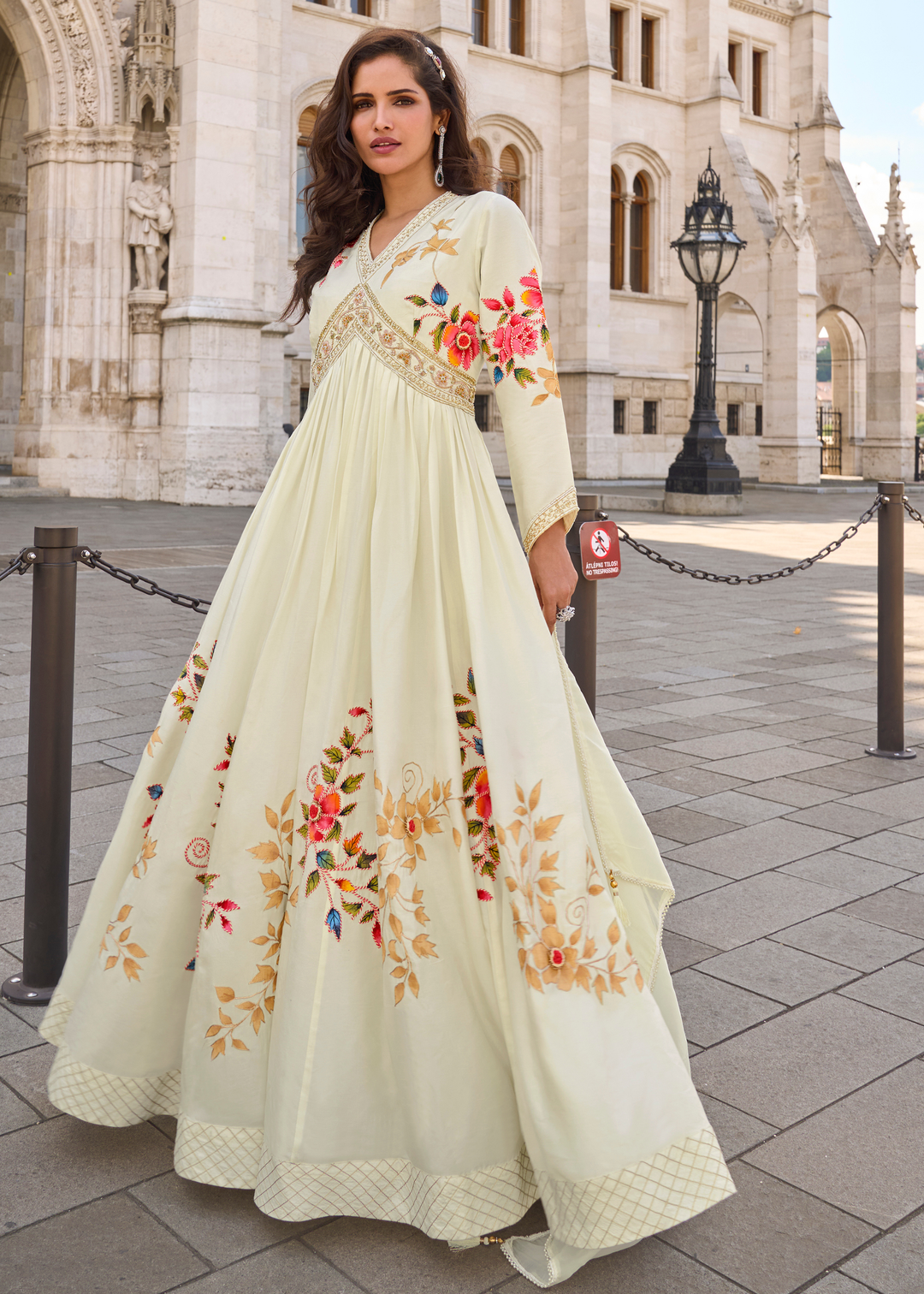 Pastel Pistachio Chinon Silk Gown with Dupatta
