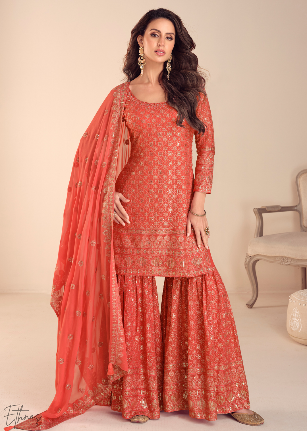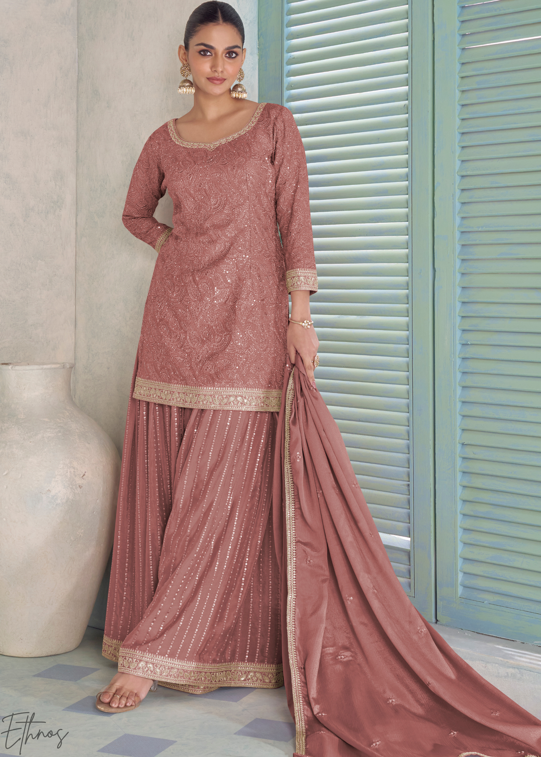 Blush Pink Zari Detailed Georgette Sharara Suit