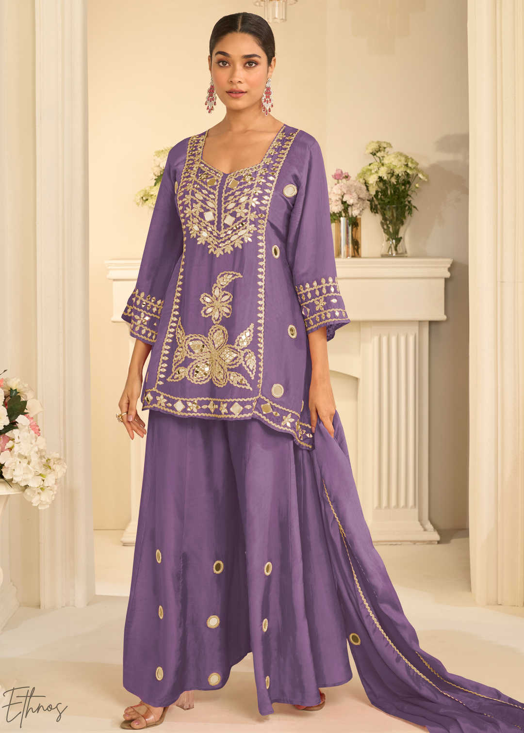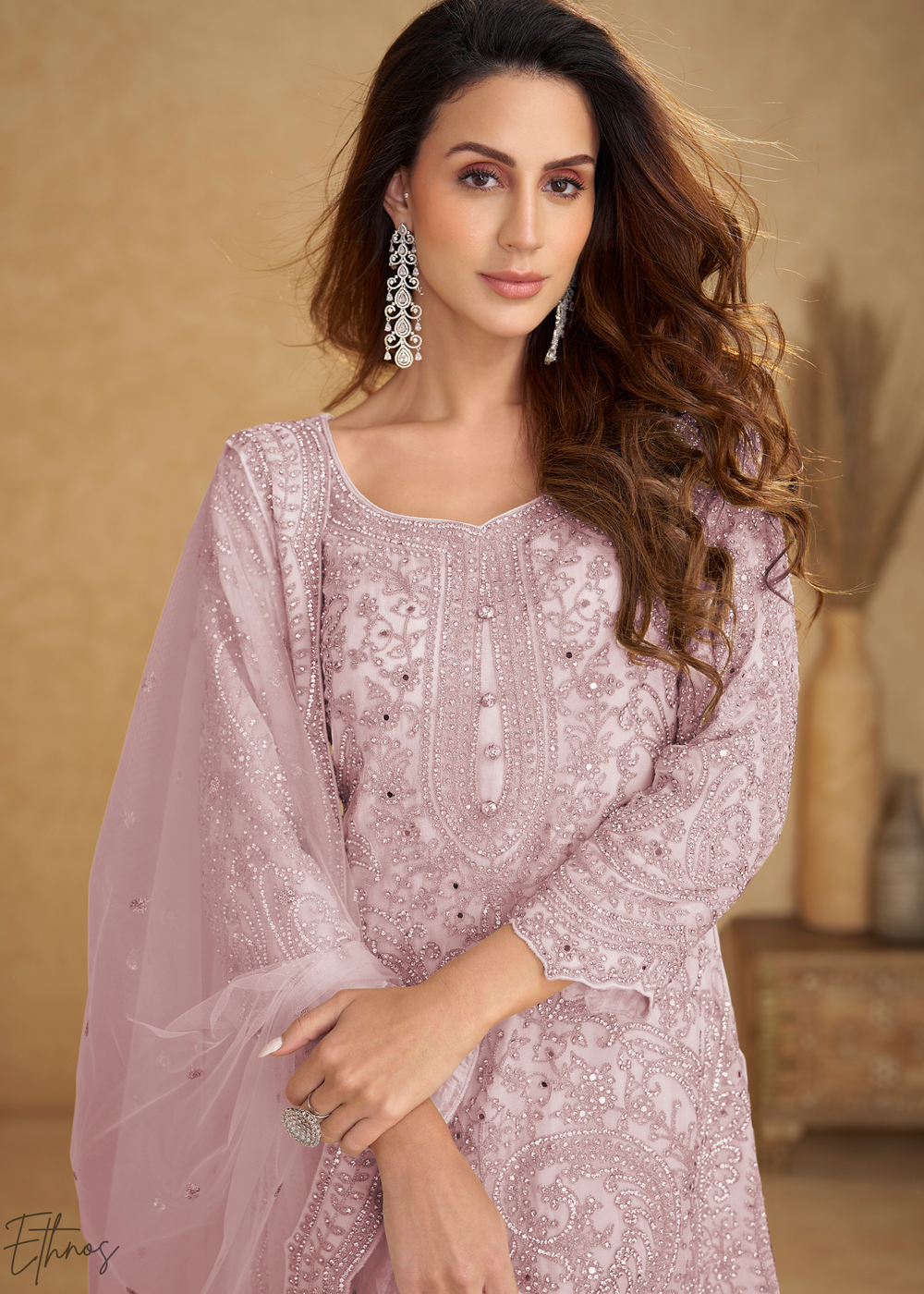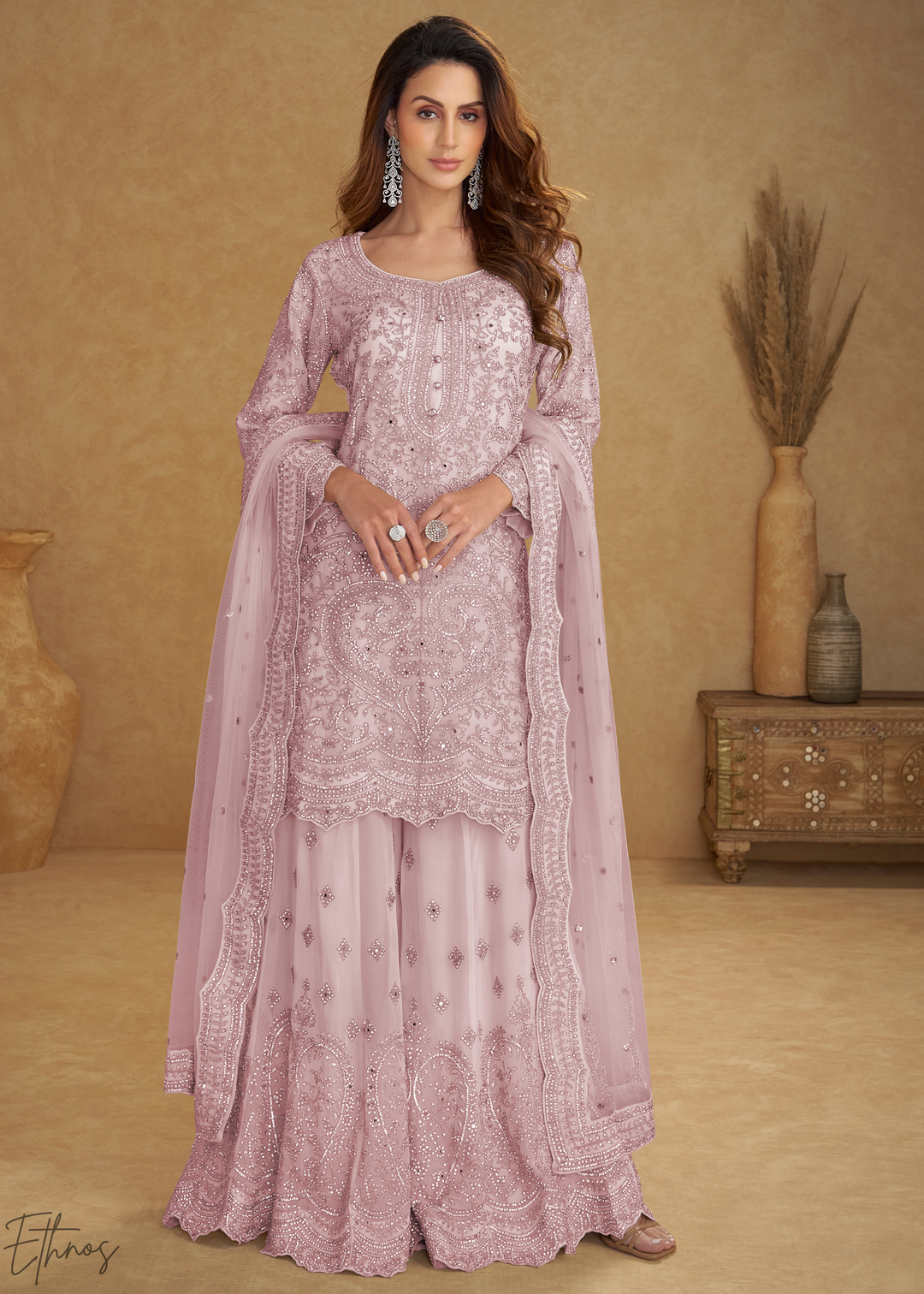 Mauve Zari-Encrusted Chinon Sharara Suit