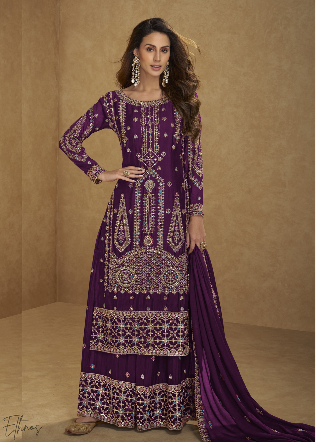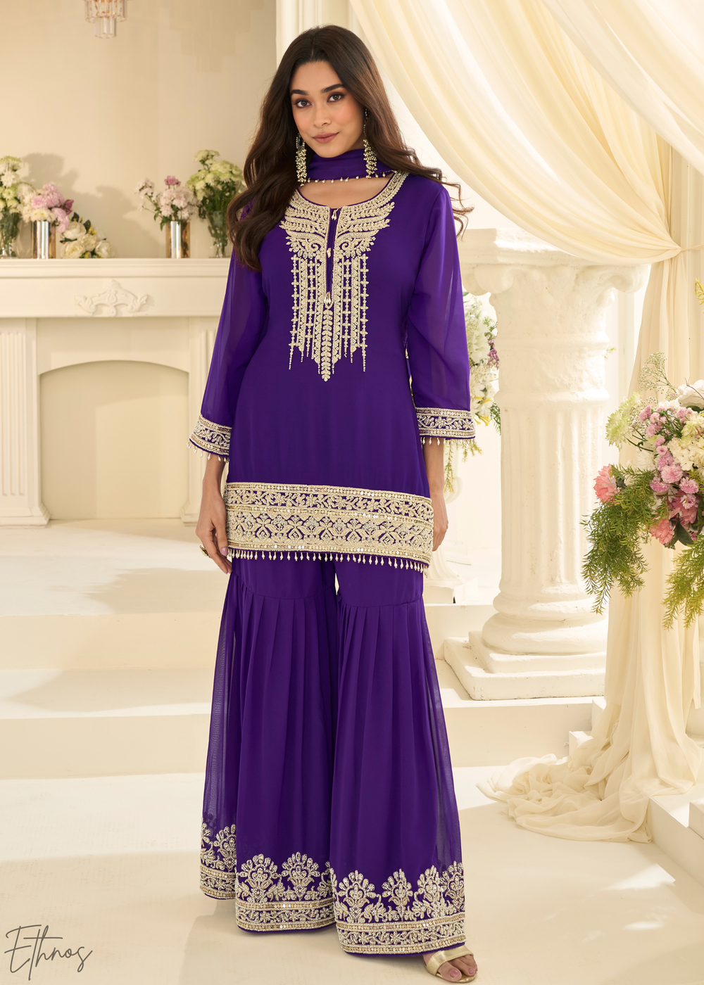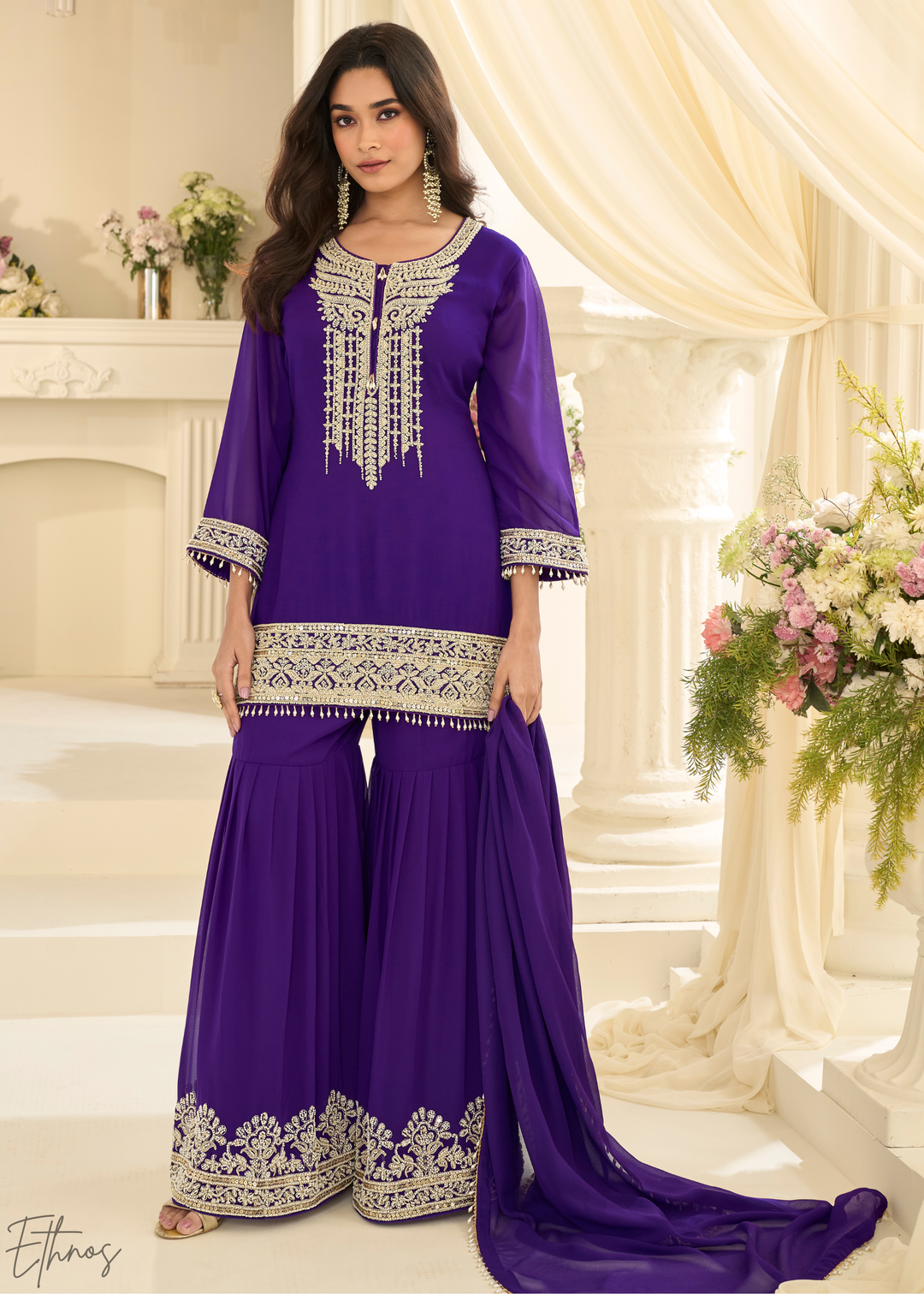Mauve Zari-Encrusted Chinon Sharara Suit