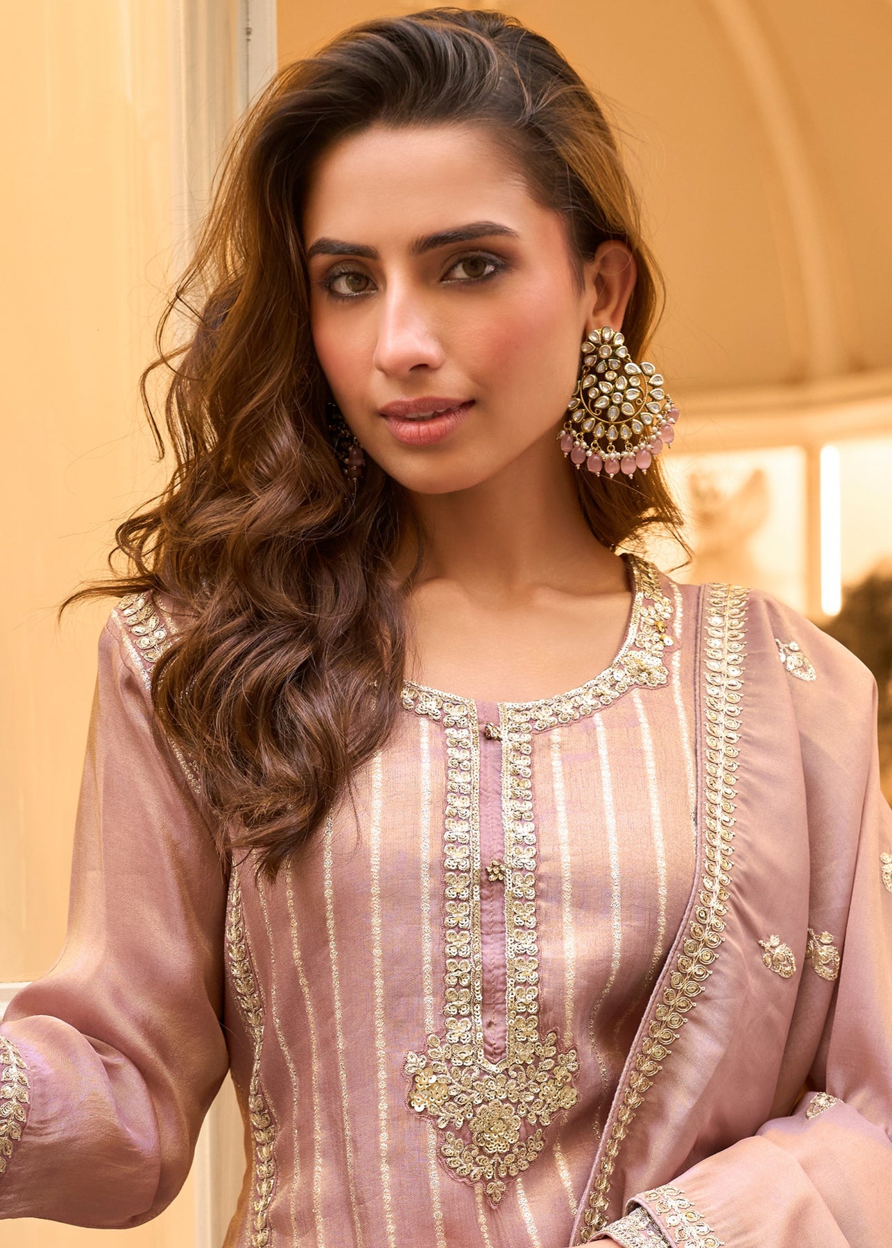African purple viscose simar jacquard suit that radiates elegance with its subtle sheen and delicate texture. Crafted entirely from blended viscose silk top, bottom, and dupatta it offers drape, comfort, and a soft touch. The intrinsic jacquard weave adds lifelike dimensional patterns without overpowering the gentle color. Perfect for daytime events where you want graceful style that feels just as good as it looks.