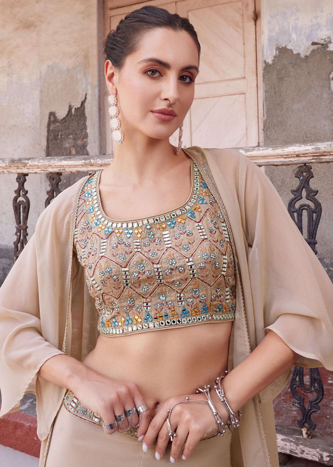 Chiku Brown Georgette Sharara Choli with Embroidery work
