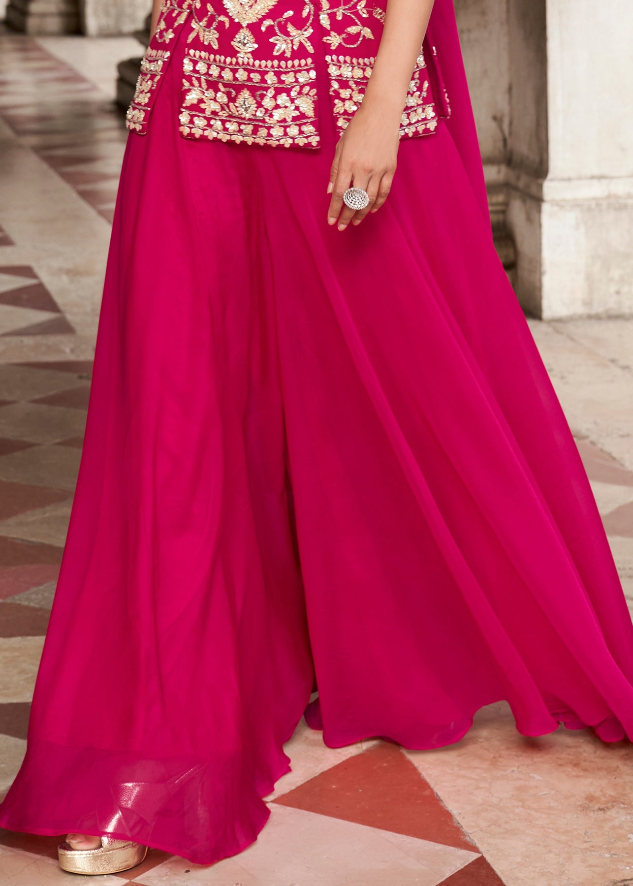 Fluorescent Pink Organza Silk Palazzo Suit With Designer Dupatta