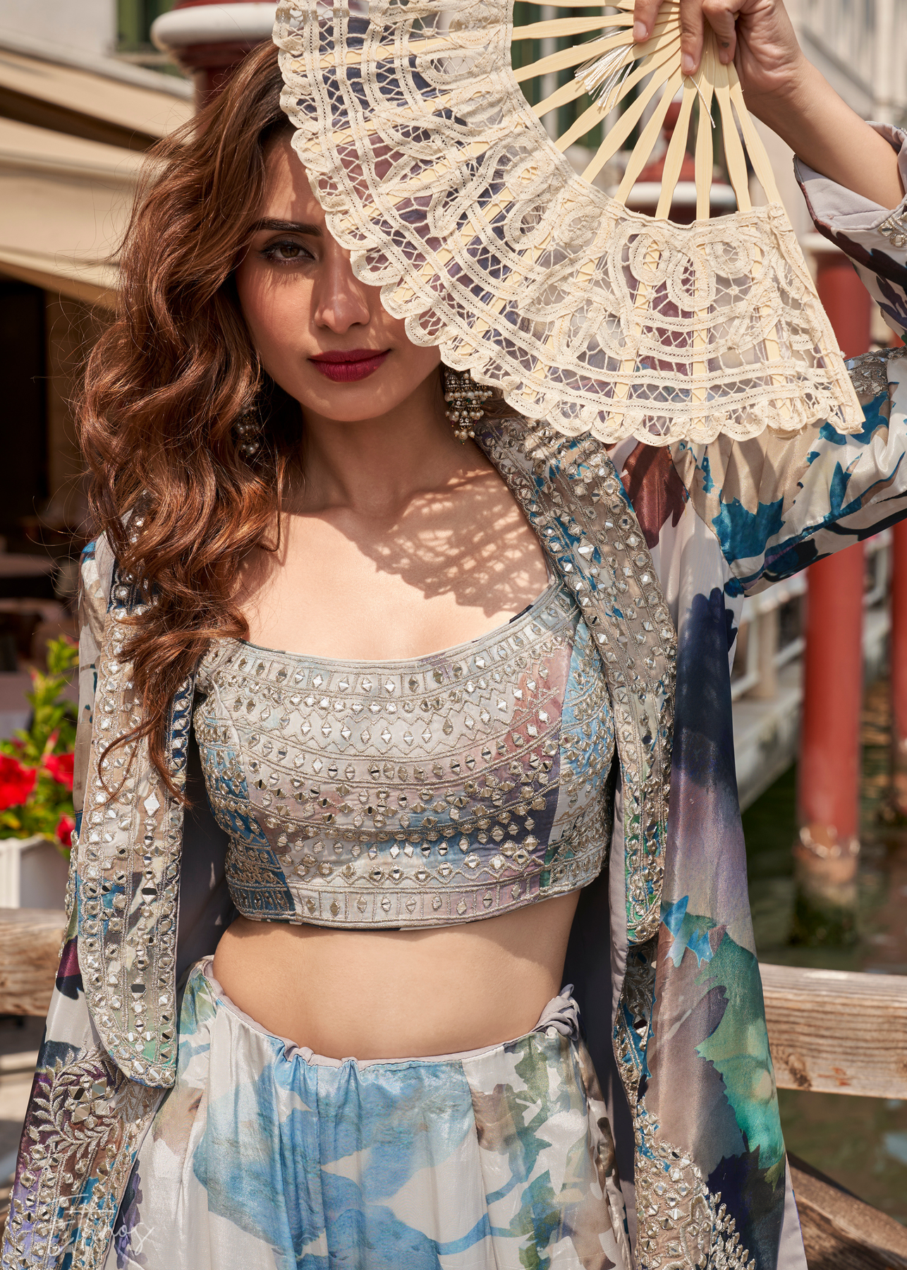 Jacket Fabric: Chinon art silk featuring mirror embroidery work.