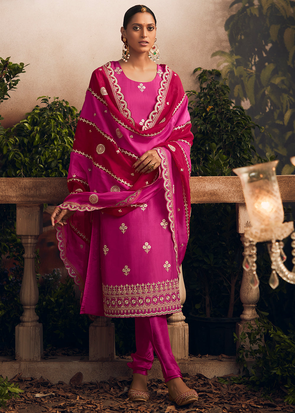 Magenta Pink Silk Salwar Suit with Intricate Embroidery work