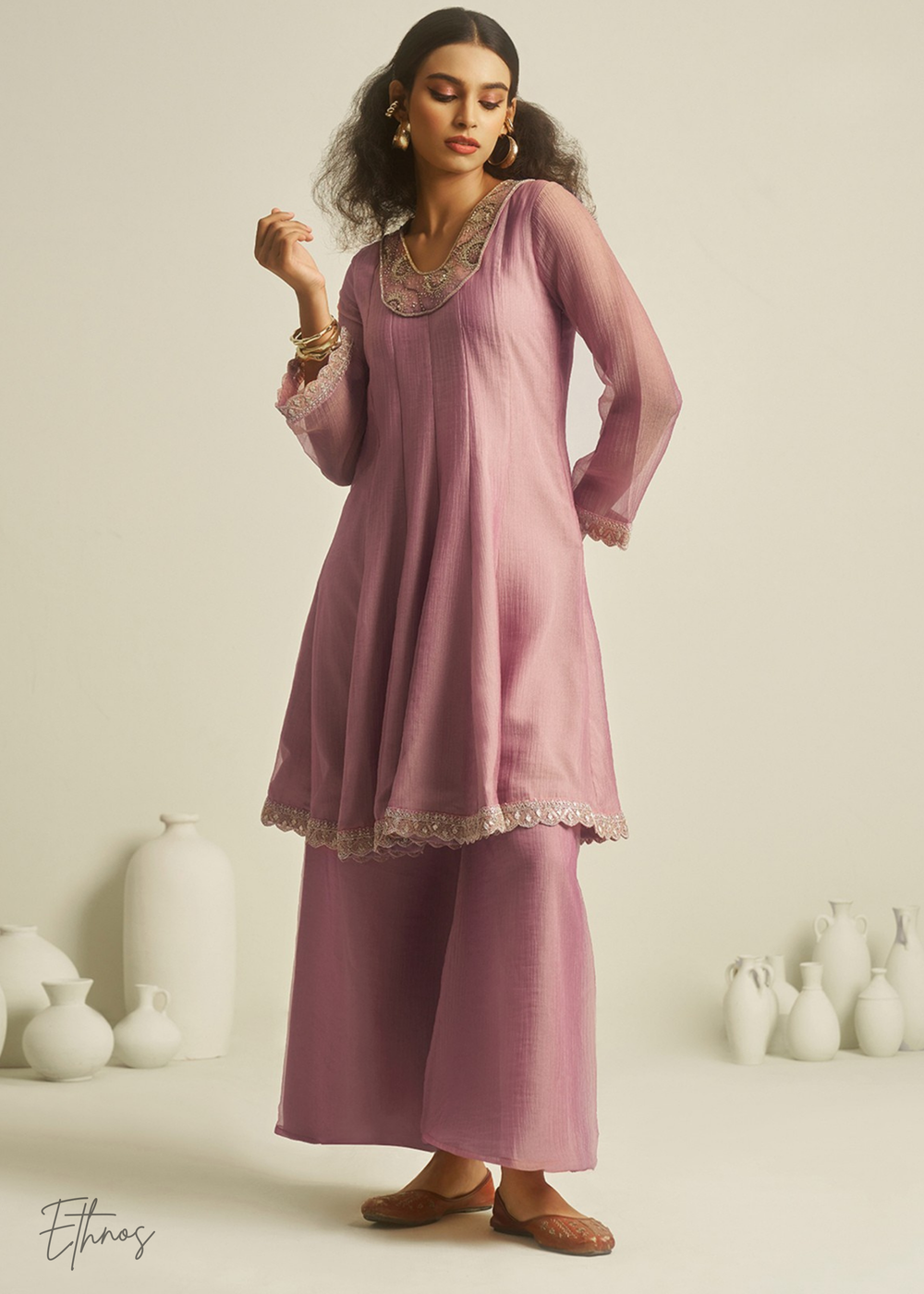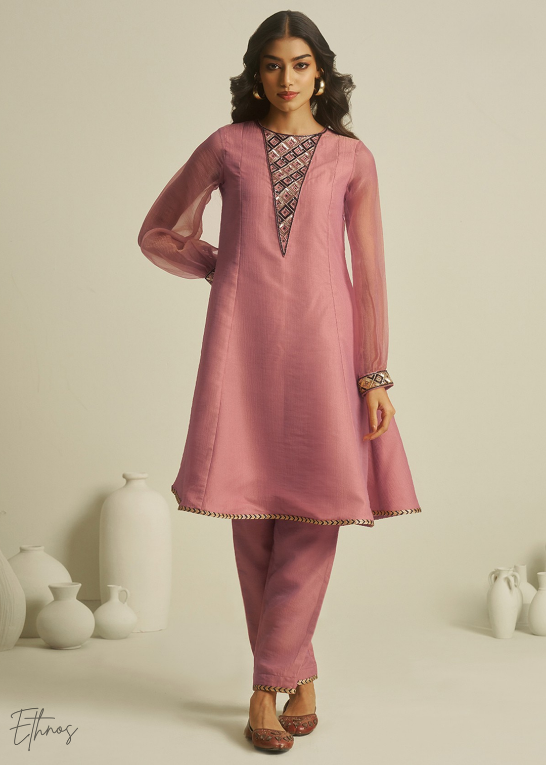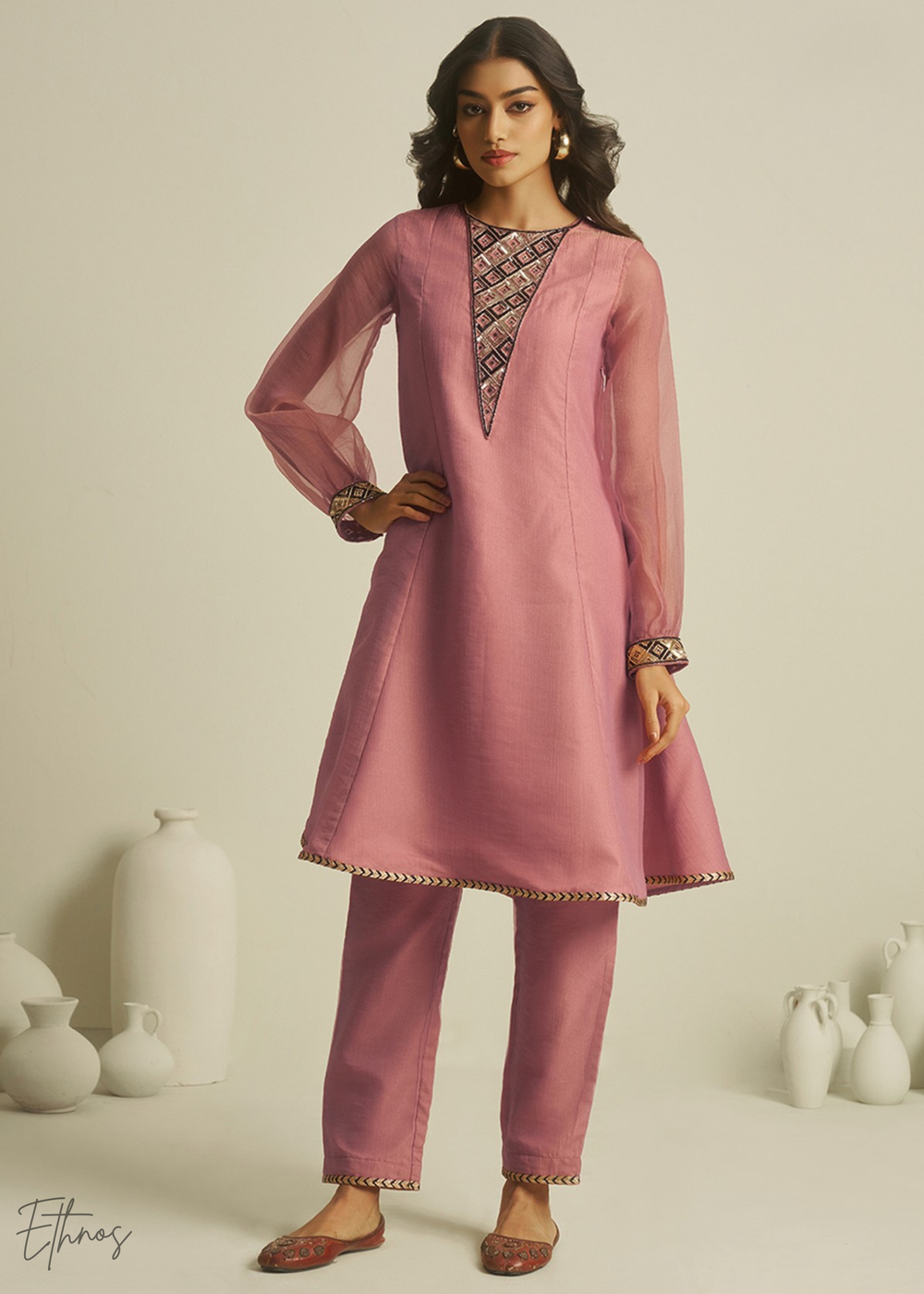 Pink Tissue Handwork Kurta With Pant