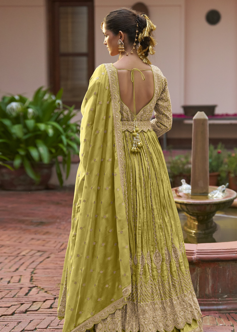 Pastel Pistachio Chinon Silk Anarkali