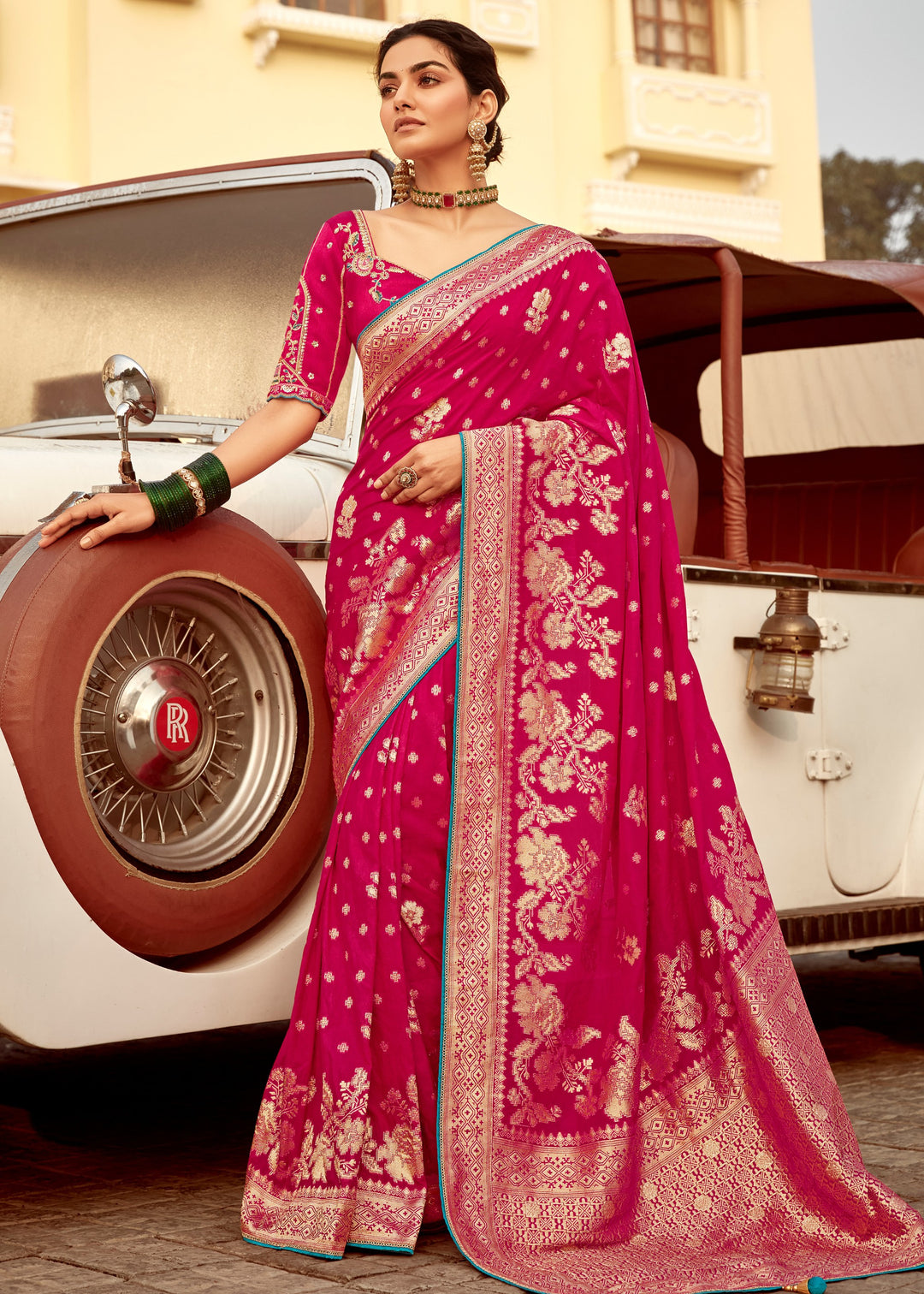 Fuchsia Pink Pure Viscose Dola Silk Saree with Zari Weaving & Embroidered Blouse
