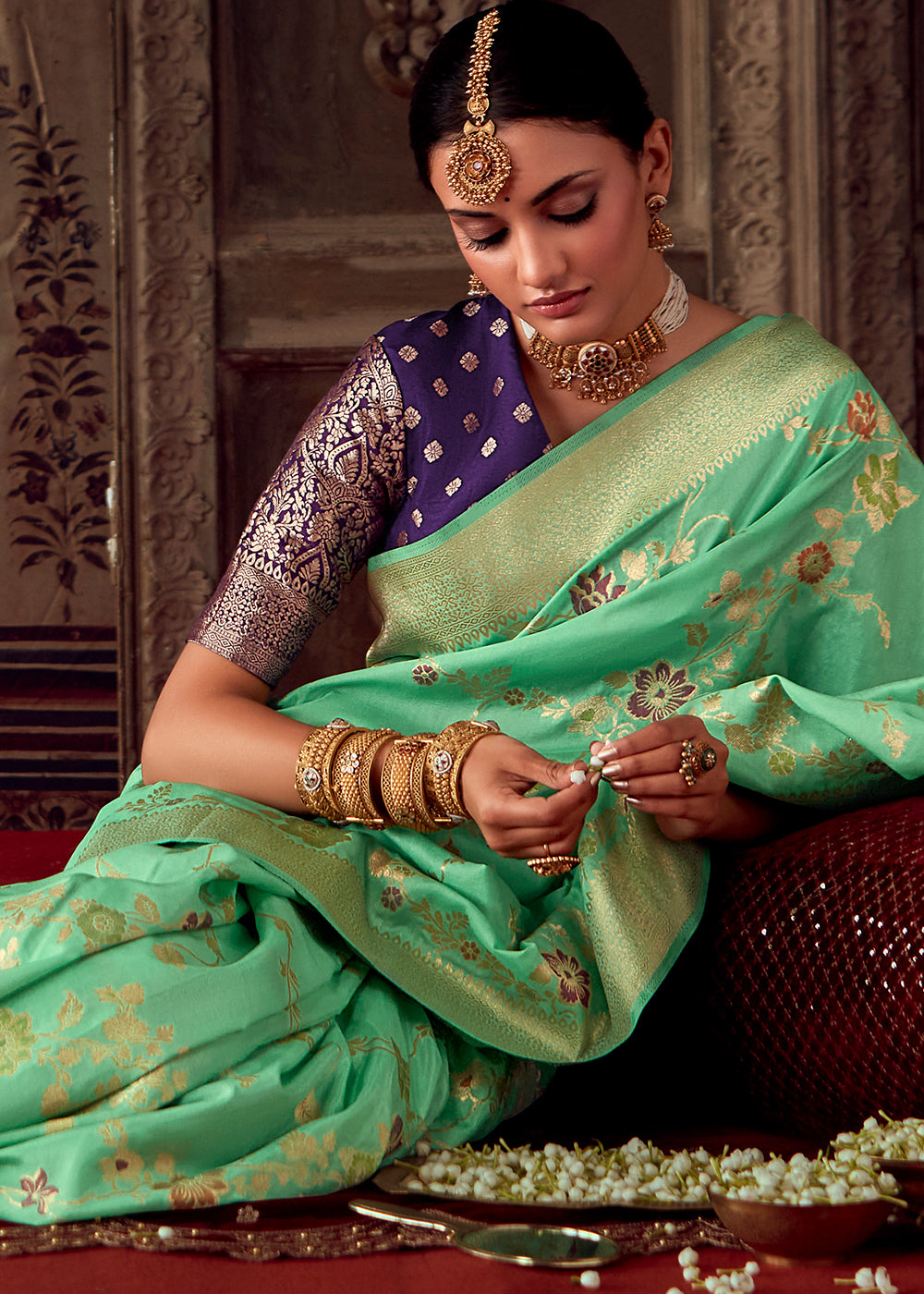 Basil Green Zari Woven Dola Silk Saree With Zari Woven Blouse