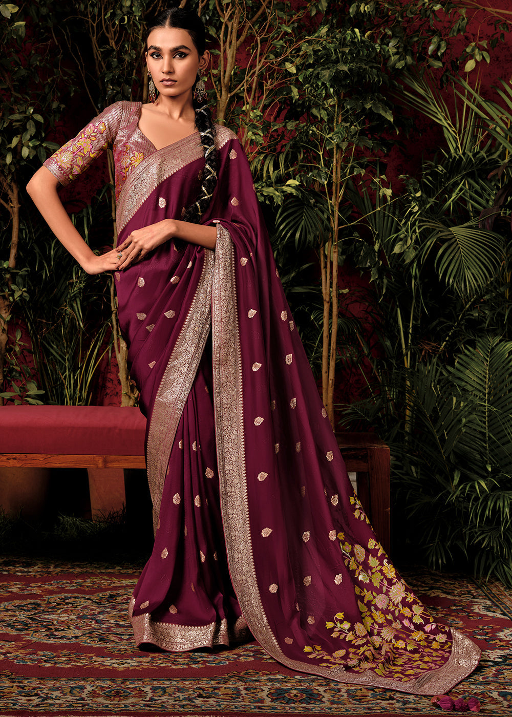 Royal Purple Pure Viscose Dola Silk Saree with Zari Weaving & Embroidered Blouse