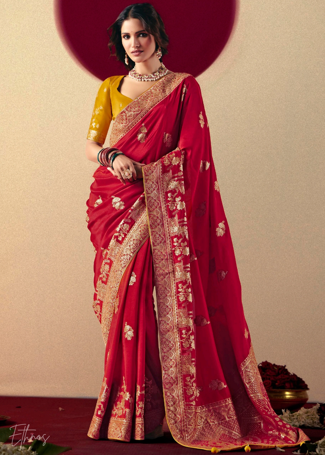 Persian Red Dola Silk Saree with Embroidery: Wedding Edition