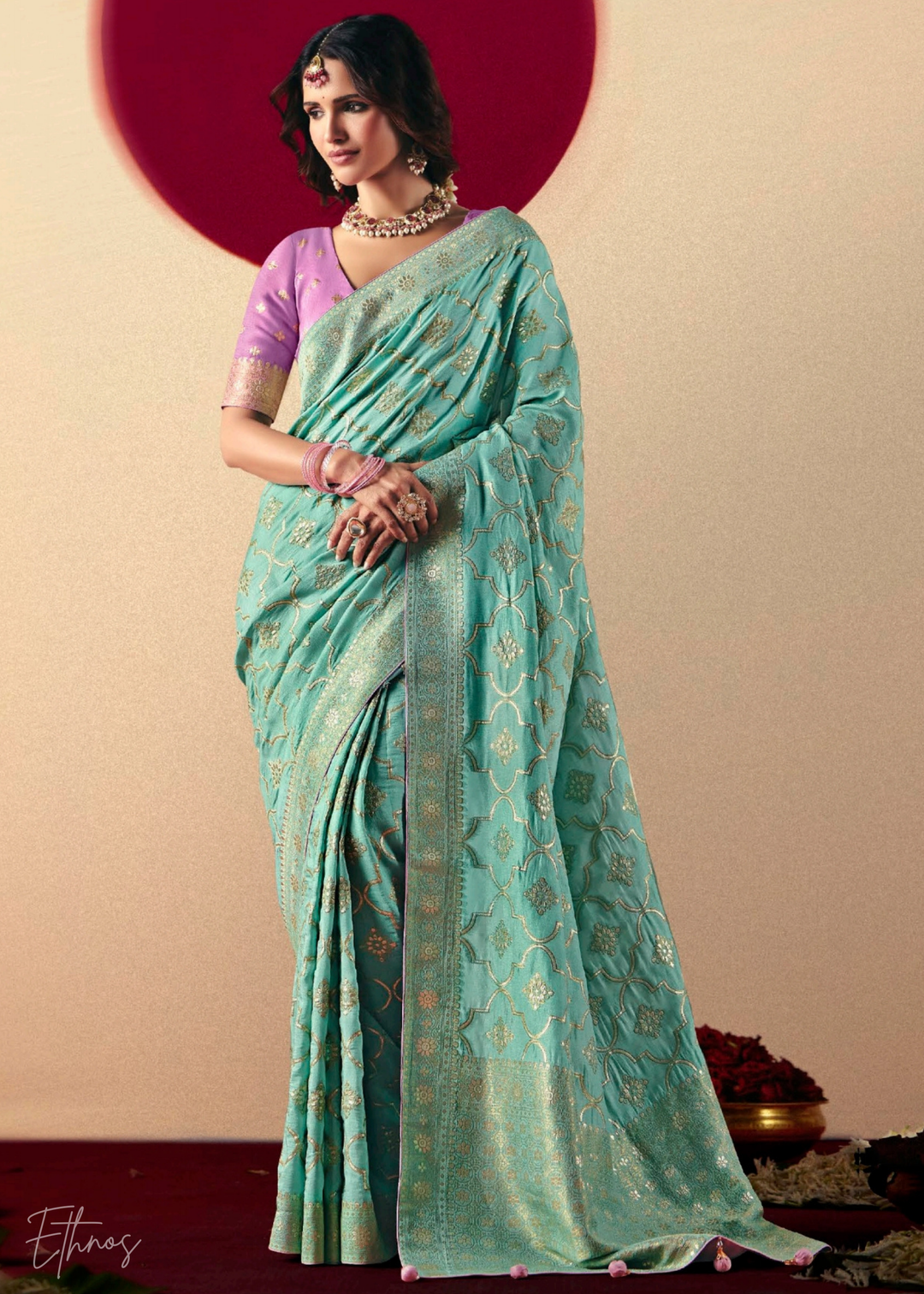 Pastel Green Tissue Dola Silk Saree: Festival Edition