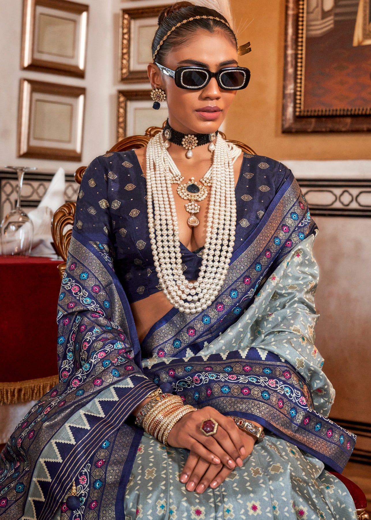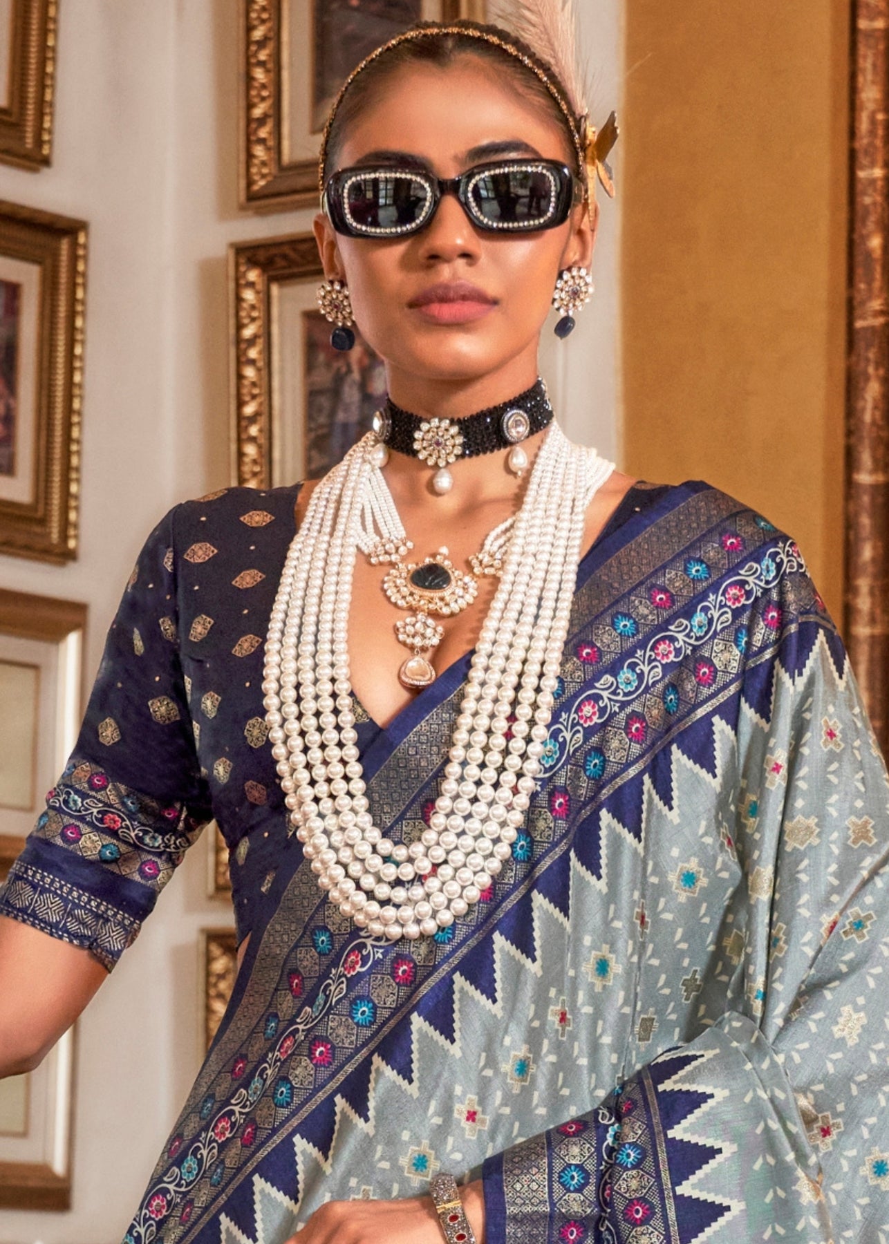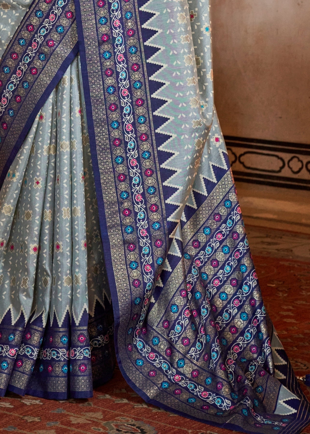 Light Steel Blue Silk Saree With Traditional Classic Design