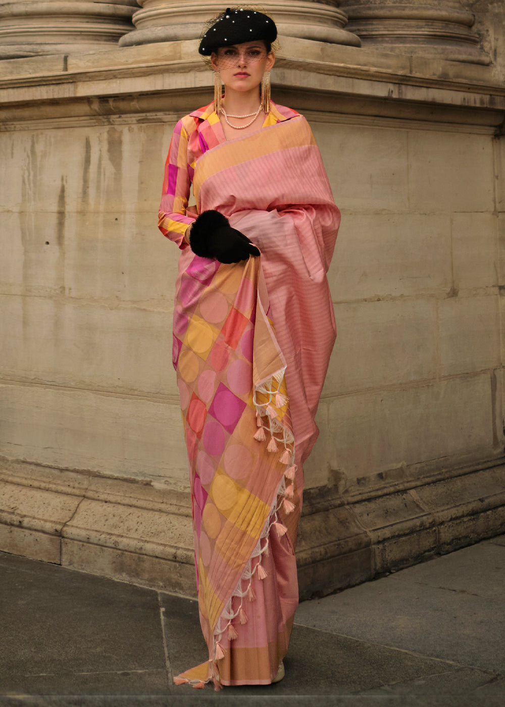 Pink Thread Woven Jal & Flower Silk Saree With Thread Woven Pallu