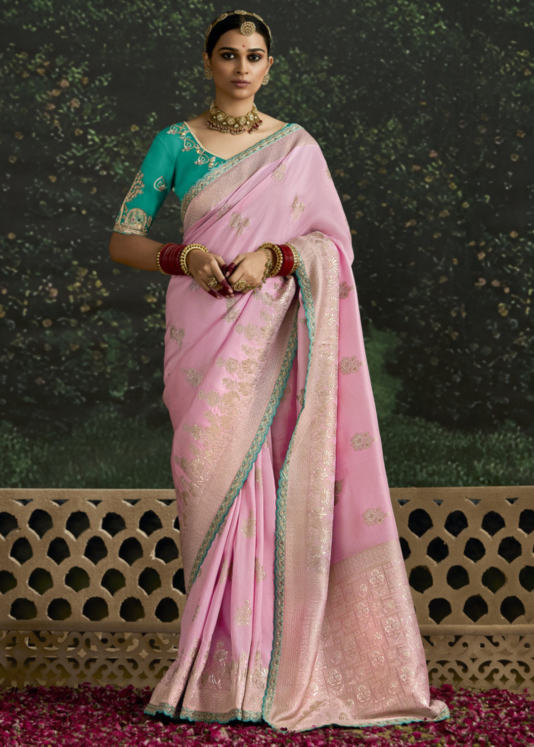 Soft Pink and Green Saree with Viscose Silk and Zari Work