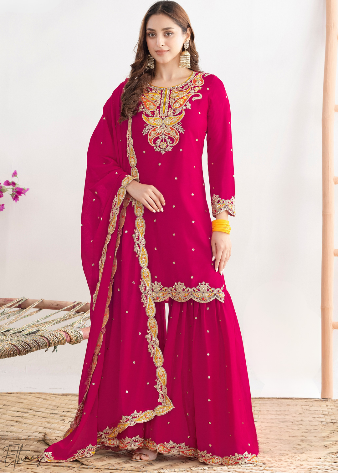Off-White Appliqué Chinon Anarkali Sharara Suit