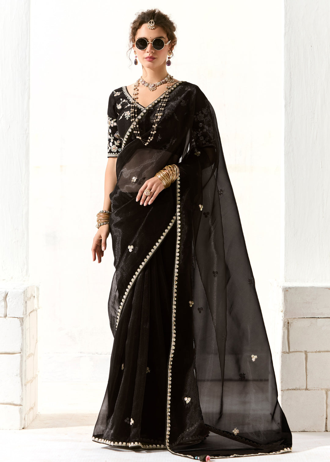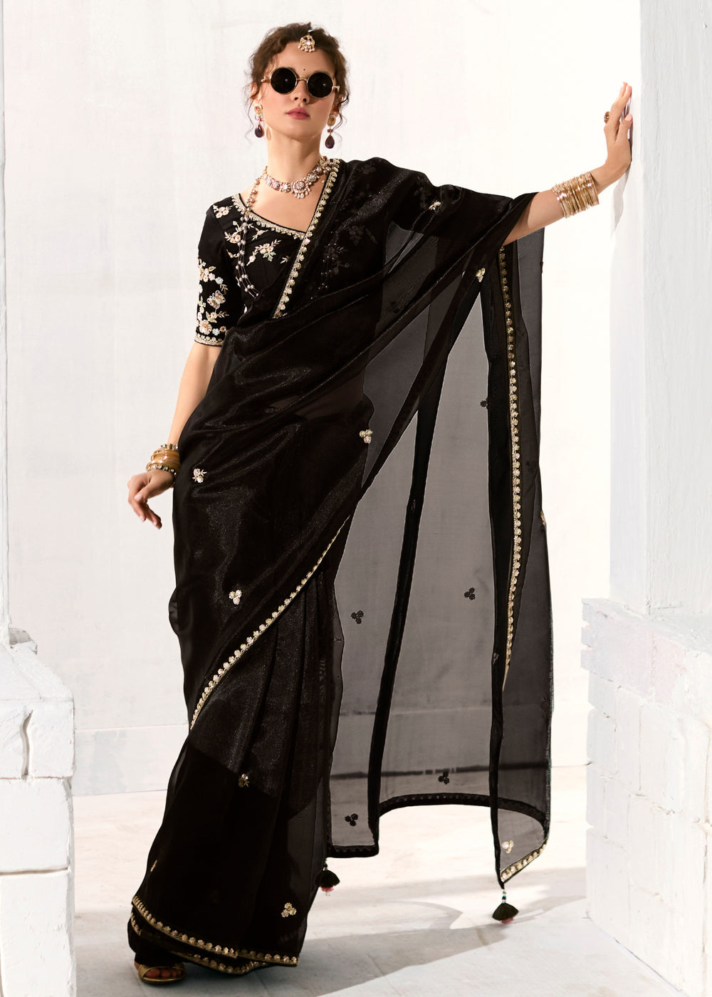 Coal Black Organza Tissue Silk Saree : Top Pick