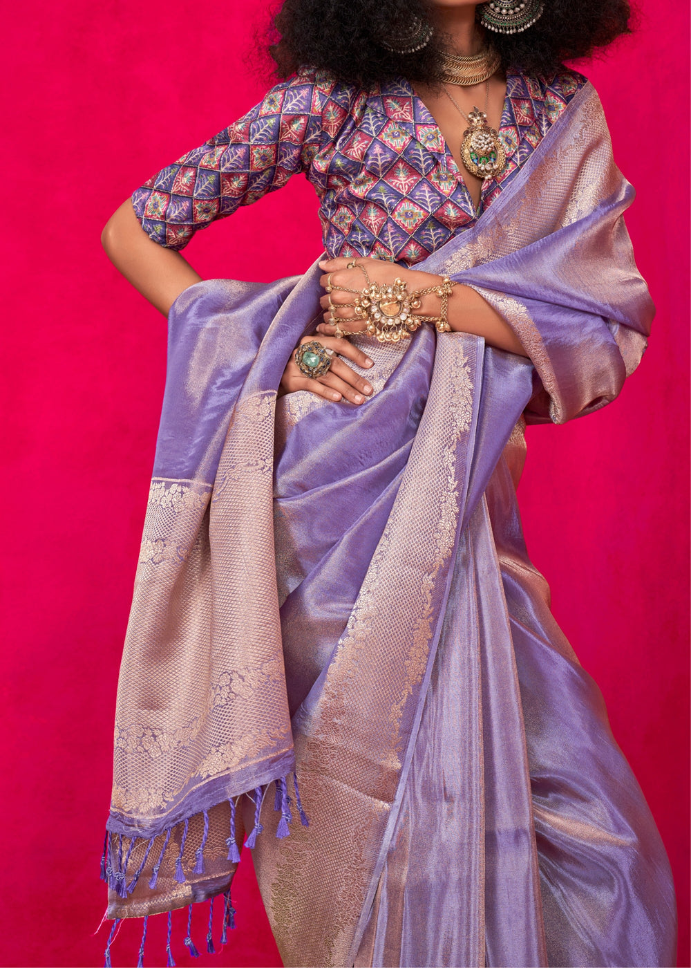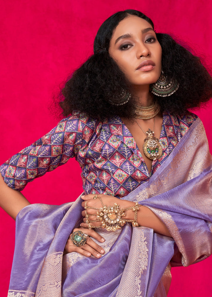 Amethyst Purple Zari Tissue Silk Saree With Weaving Border