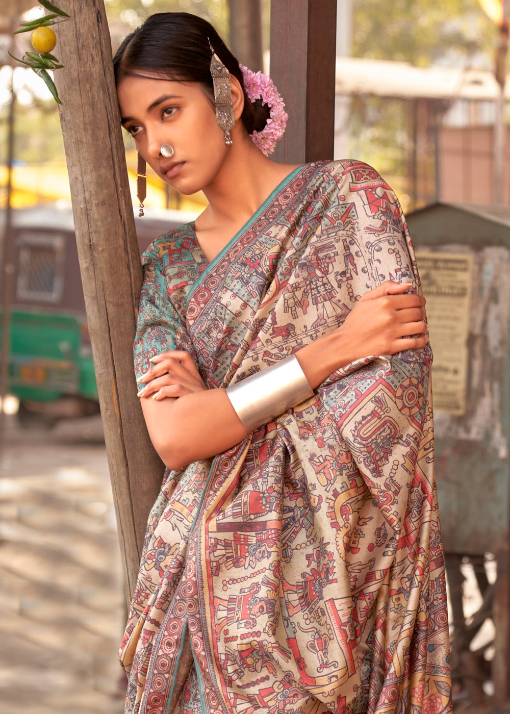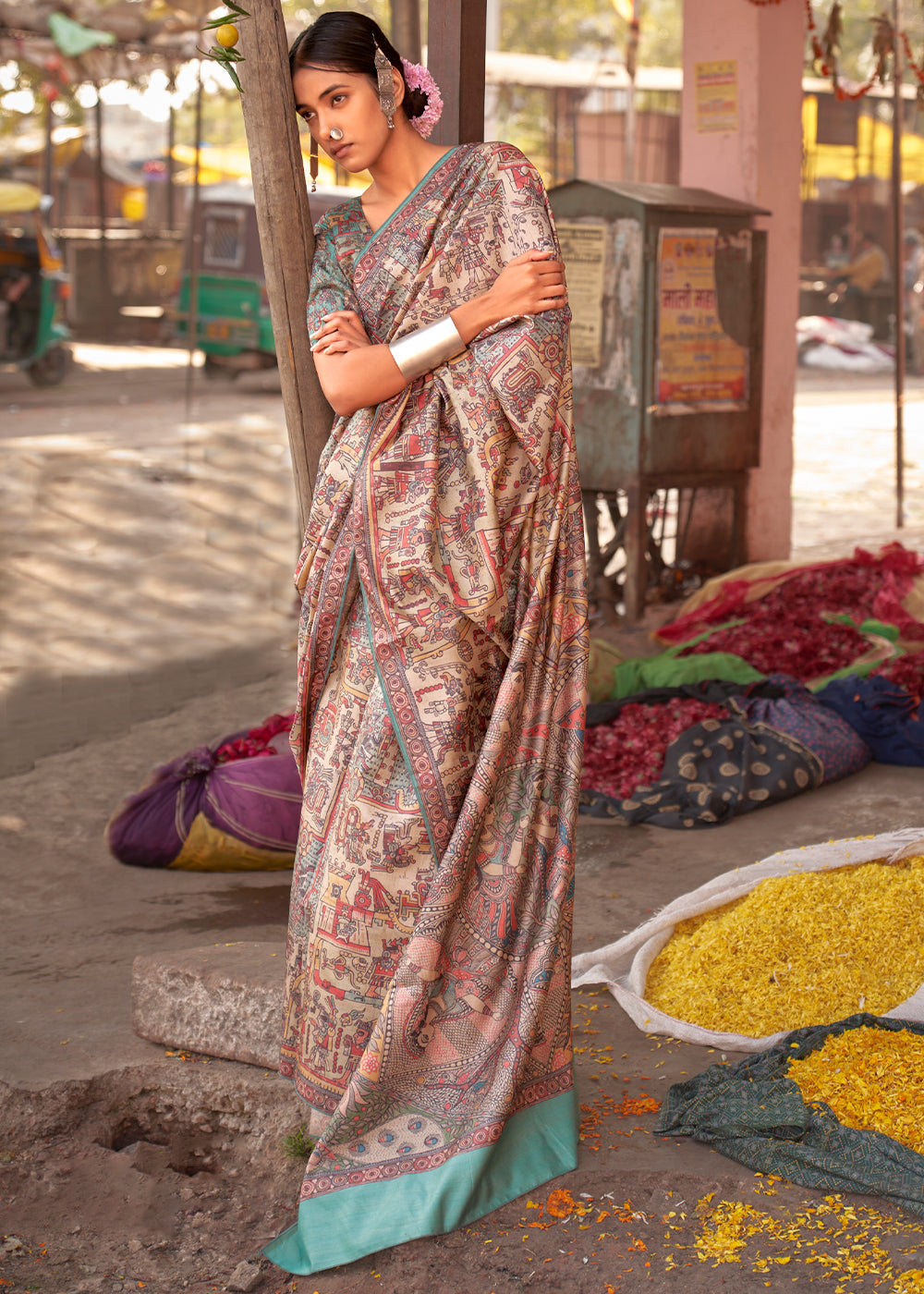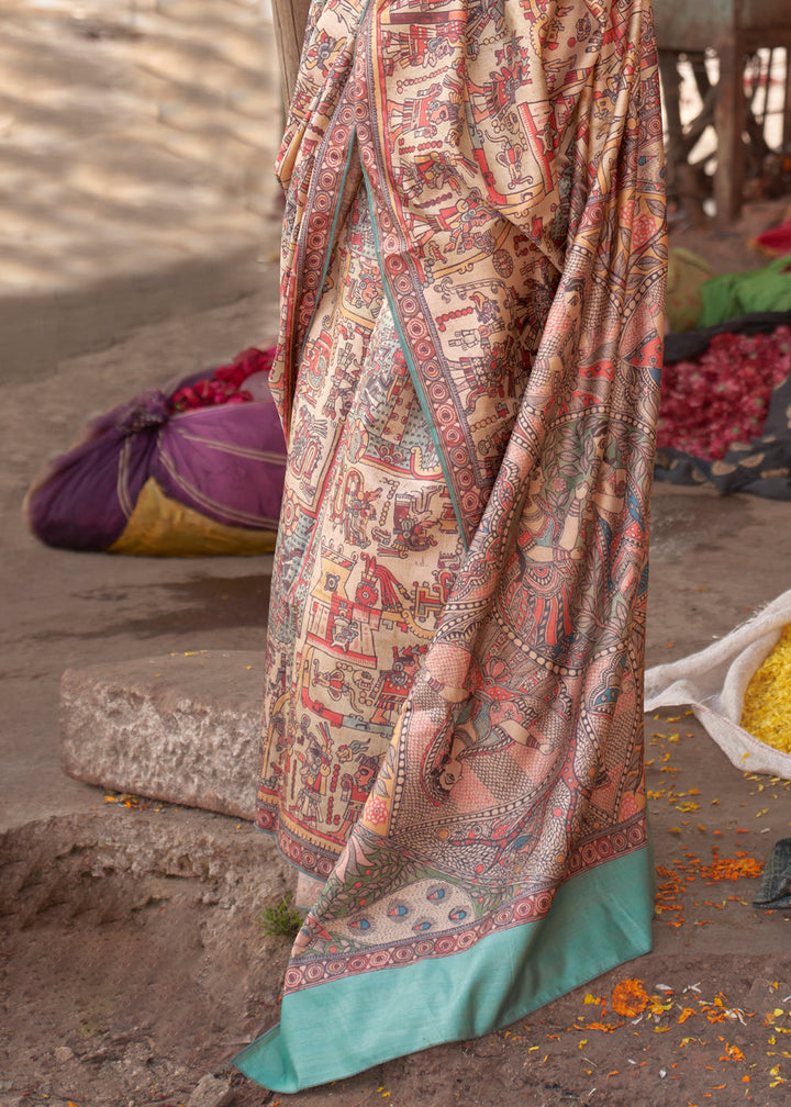 Arctic Blue Madhubani Digital Printed Silk Saree