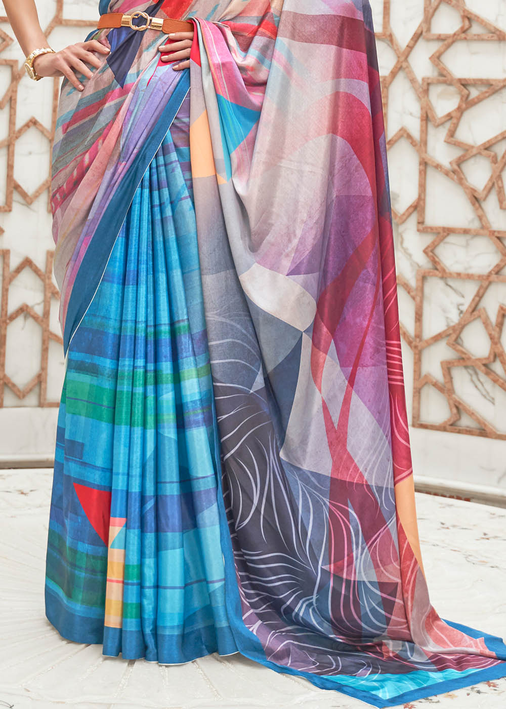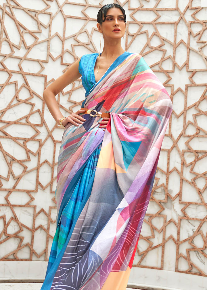 Add some glam and dreamy vibes to your elegant attire with this sizzling grace! Stupendous in look and sober in elegance, this Azure Blue Crepe Silk Saree is a graceful saree for your momentous occasions. Teamed with a sassy Digital Print, it's the perfect example of grace blended with incessant warmth and charm.