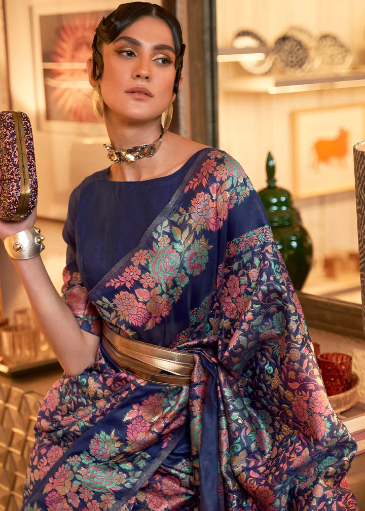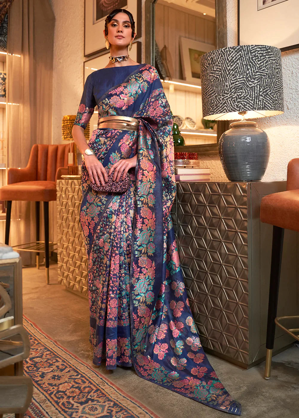 Berry Blue Kashmiri Handloom Weaving Silk Saree