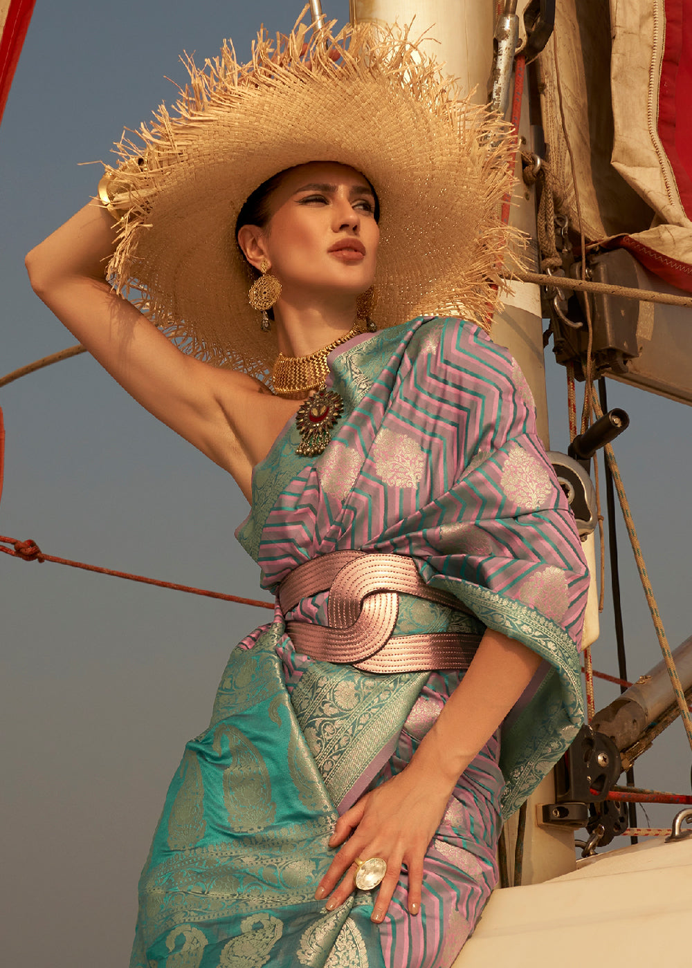 Blue & Pink Two Tone Designer Satin Silk Saree